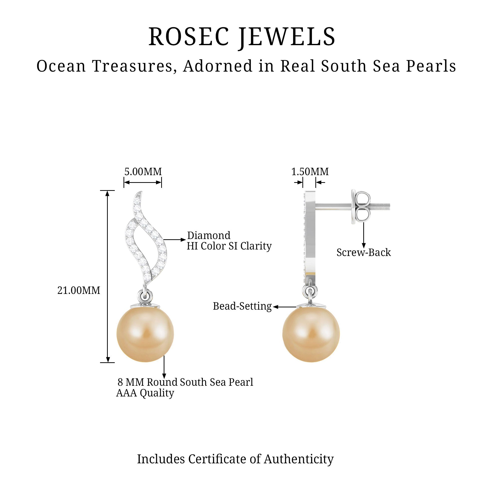 7 MM Elegant South Sea Pearl and Diamond Drop Earrings