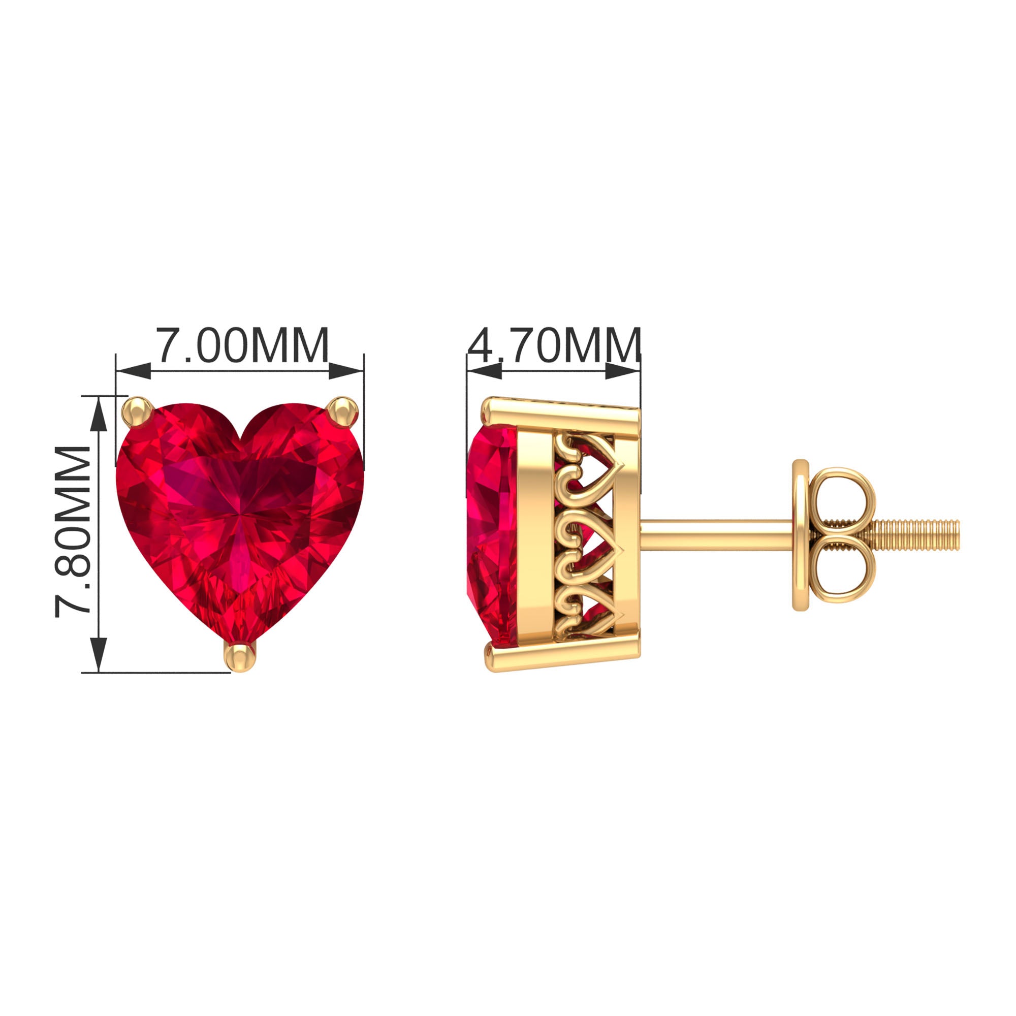 7 MM Heart Shape Created Ruby Solitaire Stud Earrings in 3-Prong Setting (AAAA Quality)