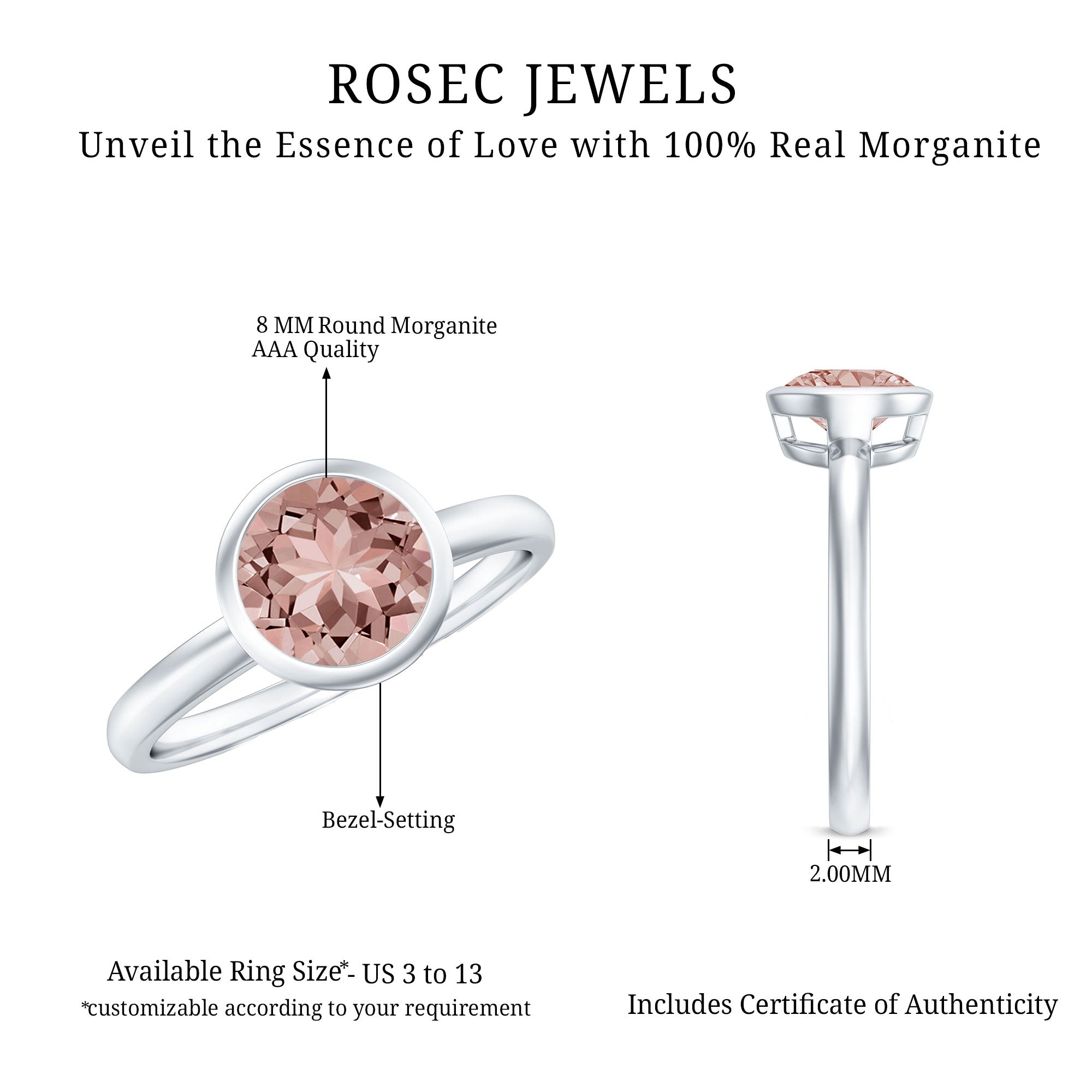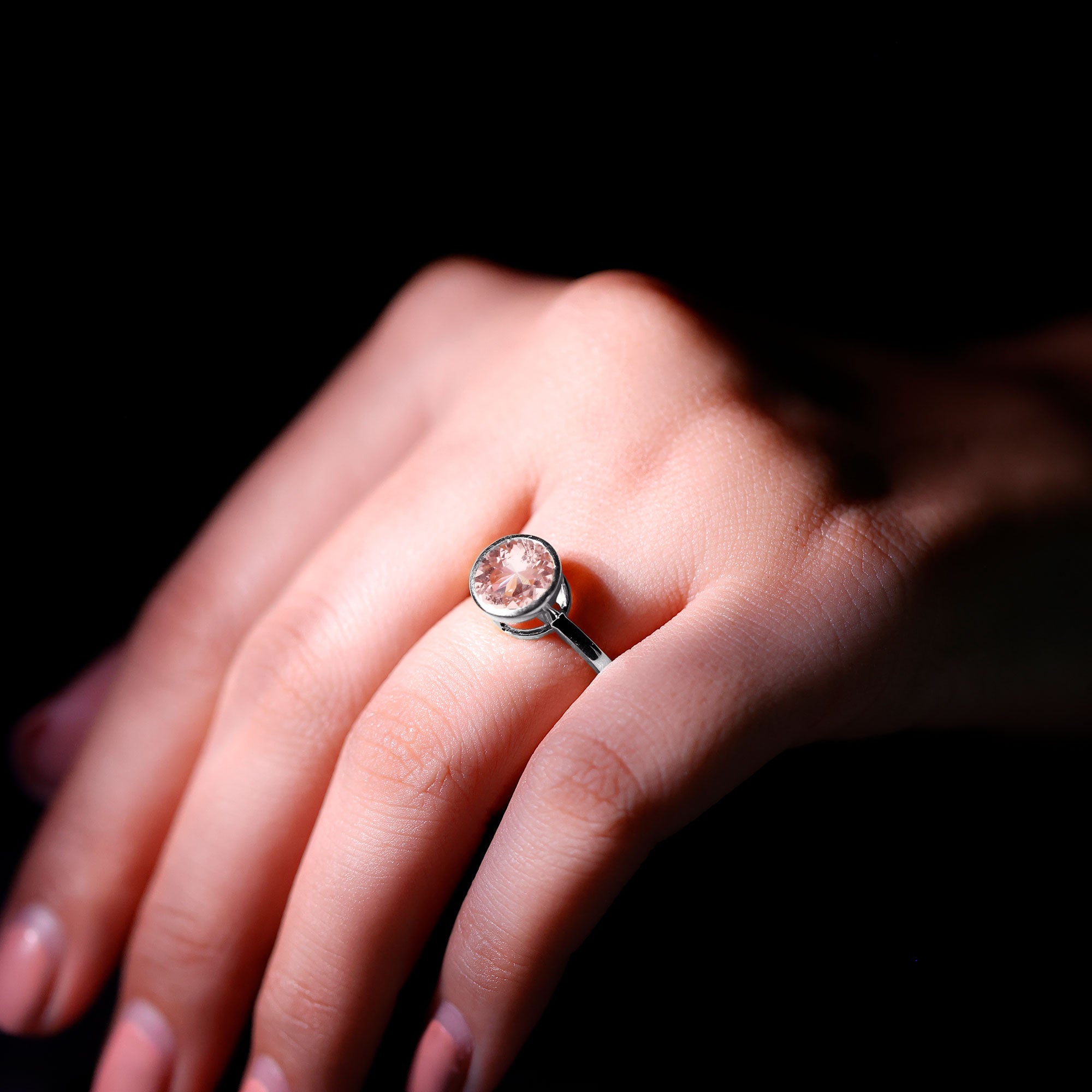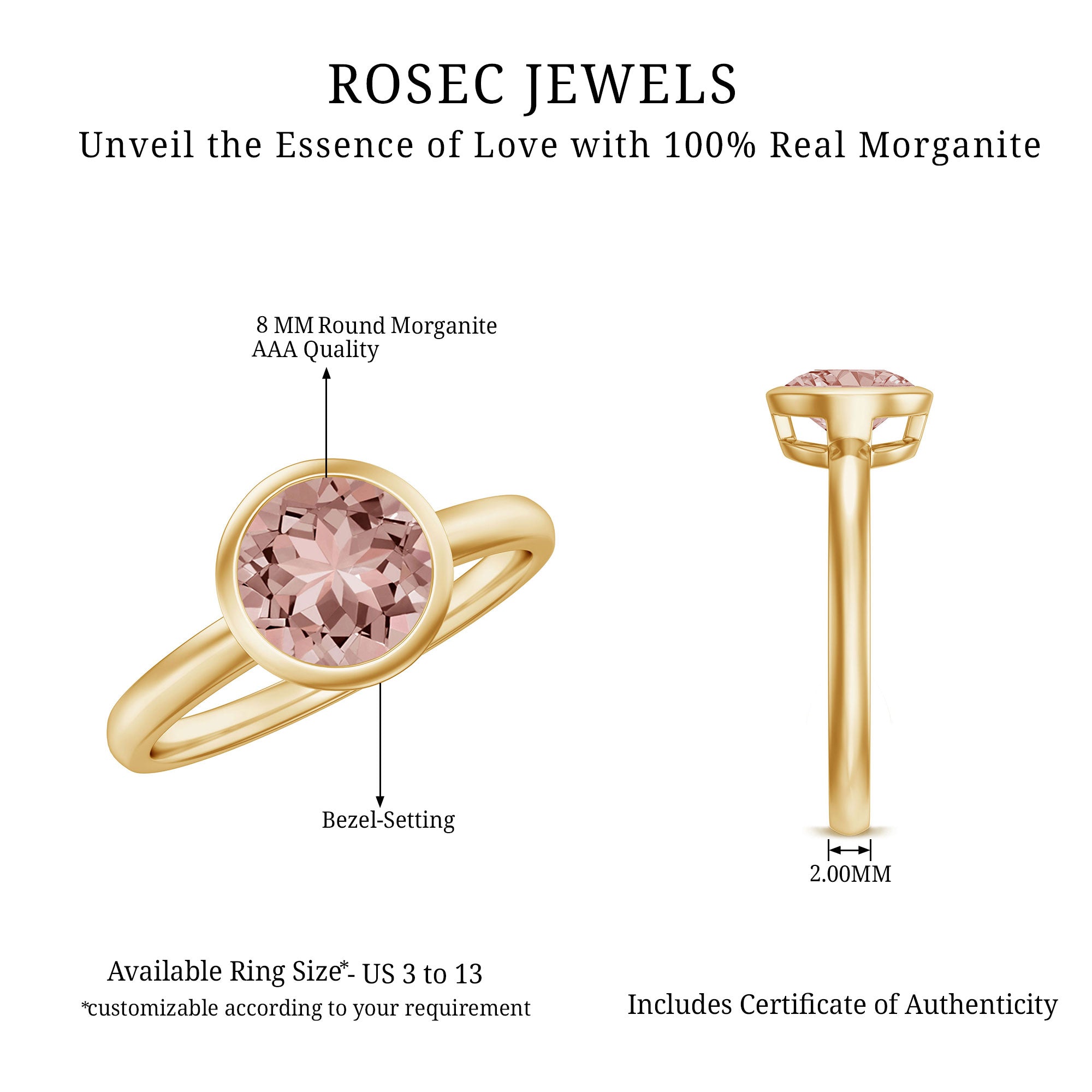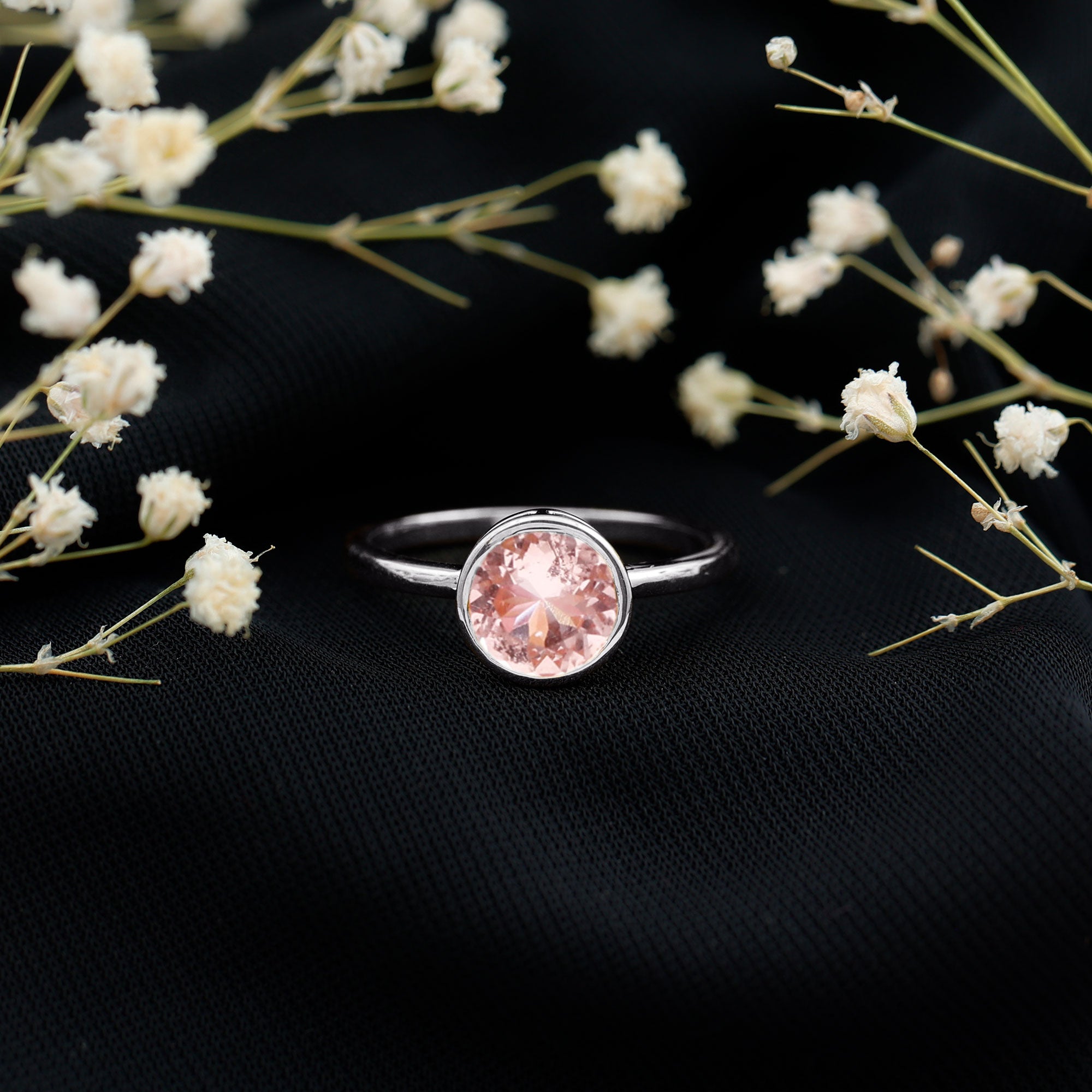 Have you made up your mind that shes the one but havent found a Promise Ring as beautiful as her then Morganite Bezel Set Solitaire Ring is your best bet. Its crafted in Solid Gold and adorned with a Gorgeous Round Shape Morganite Solitaire set in a Bezel Setting. This unique ring will be a good match for your partners unique choice.