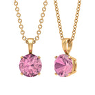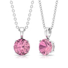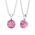 7 MM Round Cut Pink Tourmaline Solitaire Necklace