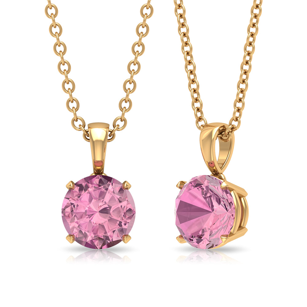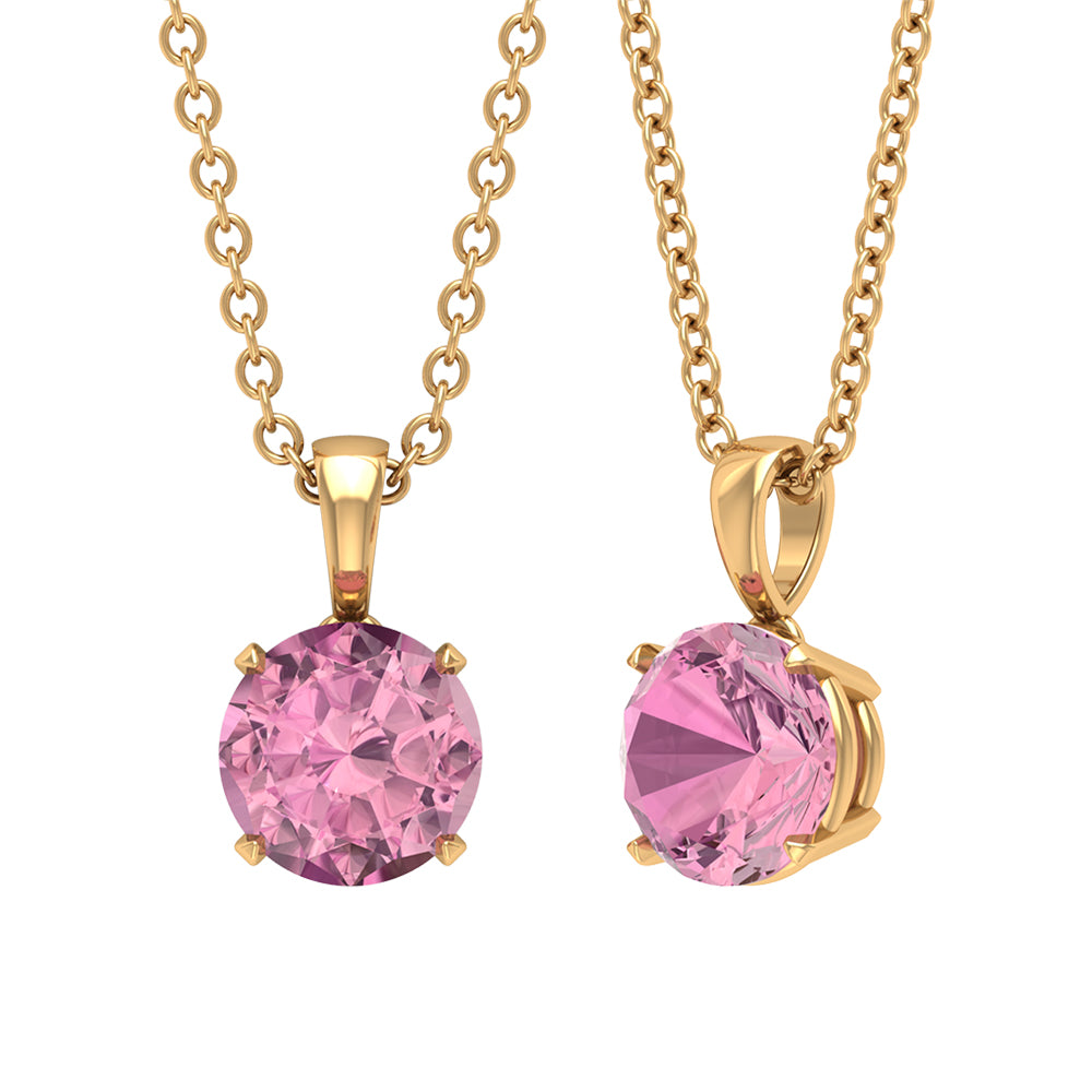 Searching for the perfect gift that will make her eyes shine and face smile - this Solitaire Pendant Necklace got you covered. Embellished with a 7 MM round cut pink tourmaline of AAA Quality delicately set in secure 4-prong setting, allowing it to shine brightly from every angle. Our Pink Stone Necklace makes an ideal birthday gift for October born people, perfect for celebrating the love and connection you share. Simple, yet stunning, this Simple Pendant will make her feel truly loved and appreciated.