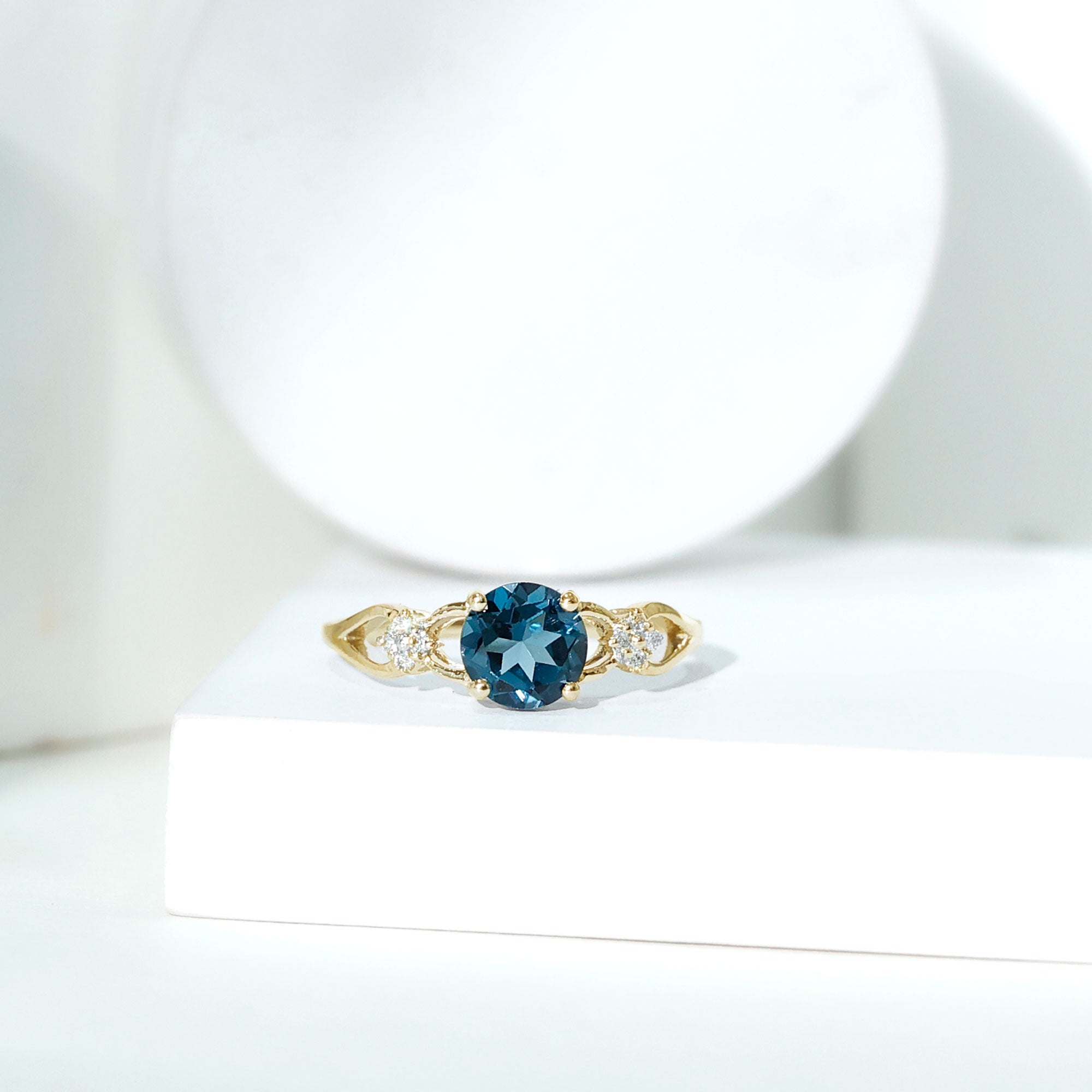 7mm London Blue Topaz Solitaire Engagement Ring with Diamond