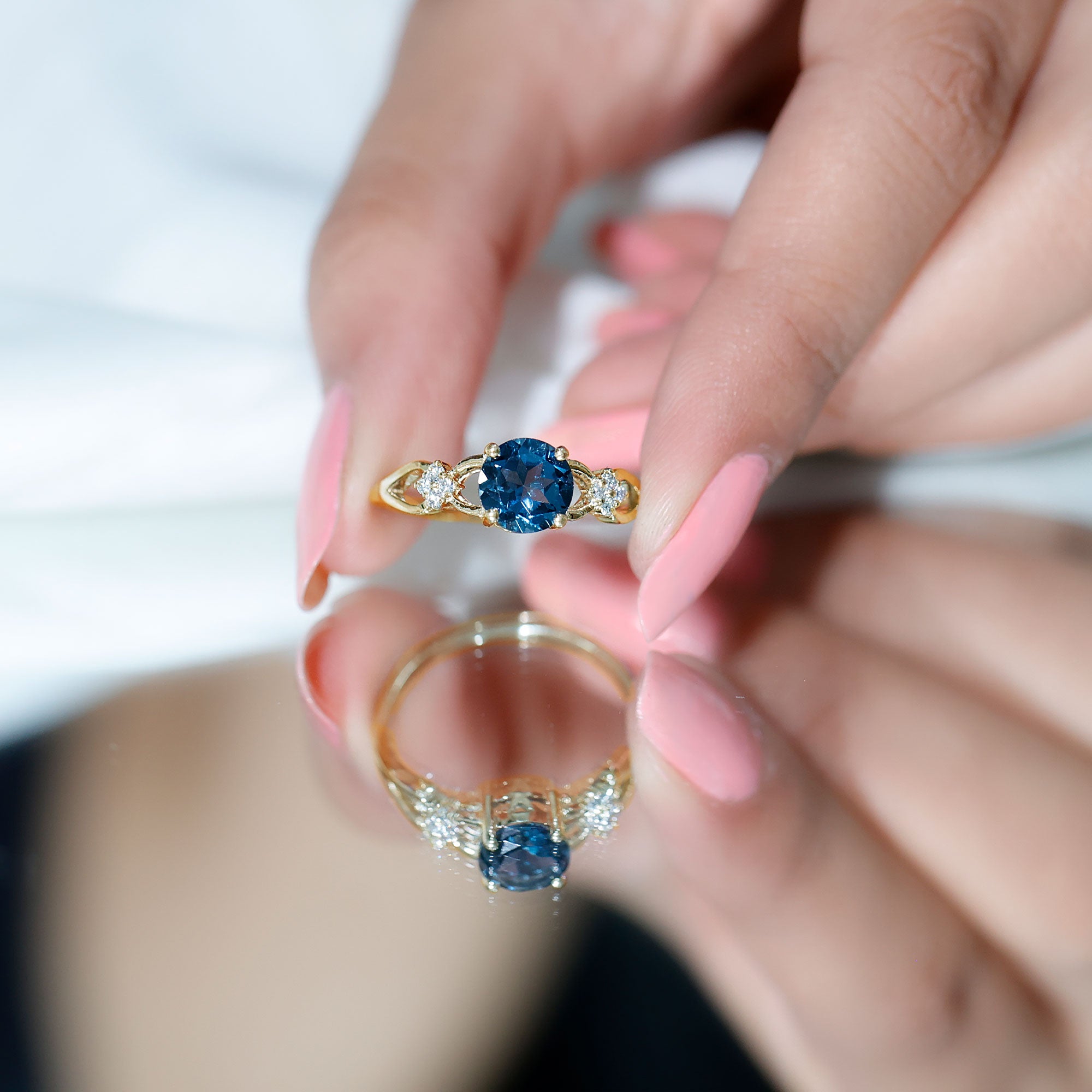 Allow your heart to express itself in brilliance with this stunning Crossover Engagement Ring, a creation that elegantly embodies the spirit of love, commitment, and timeless sophistication. Crafted to transform feelings into treasured heirlooms, this London Blue Topaz Engagement Ring serves as a luminous tribute to the union of two souls. At its core is a 7MM round shape London Blue Topaz, securely held in a delicate prong setting and round shape diamonds set on the shank in floral style, amplifying its brilliance and capturing the attention of all who behold the heart of your love narrative. The distinctive silhouette makes a romantic impression with each glance, bold, feminine, and unforgettable. The band showcases a refined infinity crossover shank, embellished with meticulously set round diamonds that intertwine gracefully like two paths merging into one. Representing unity and eternity, the flowing lines symbolize a connection that strengthens with each passing moment. Made with AAA quality london blue topaz, celebrated for its exceptional clarity and brilliance, this Criss Cross Engagement Ring offers diamond-like sparkle with a more considerate, sustainable approach. Ideal for a proposal, an anniversary, or as a treasured symbol of commitment, this Blue Topaz Ring will enchant hearts, just as yours has. Whether intended for your partner, fiancée, or as a significant gift for someone special, this Solitaire Engagement Ring articulates the essence of love in its most genuine form.