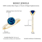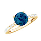 7mm Round London Blue Topaz Solitaire Ring with Diamond Side Stones