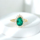 7X10 mm Pear Cut Lab Created Emerald Halo Engagement Ring with Diamond