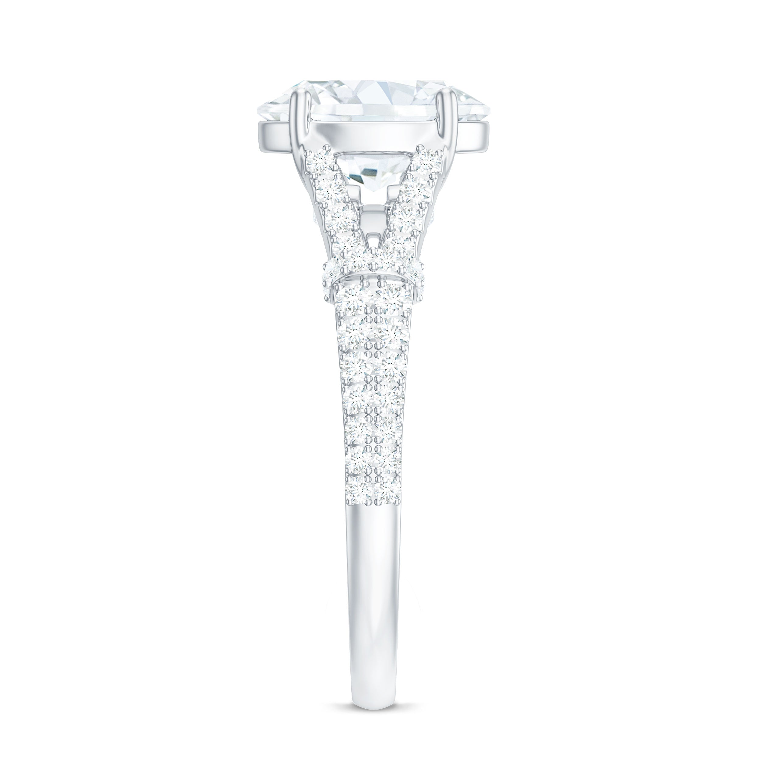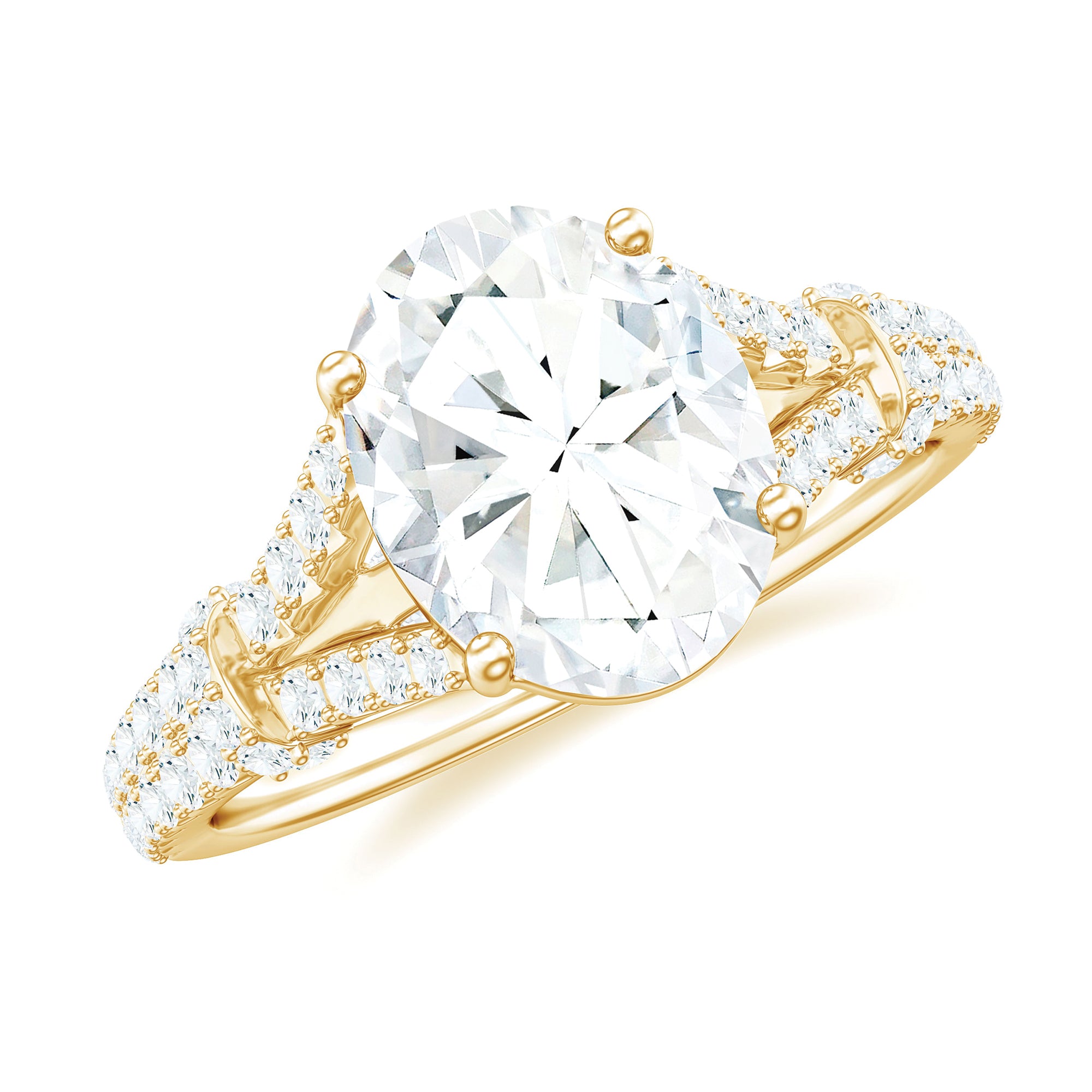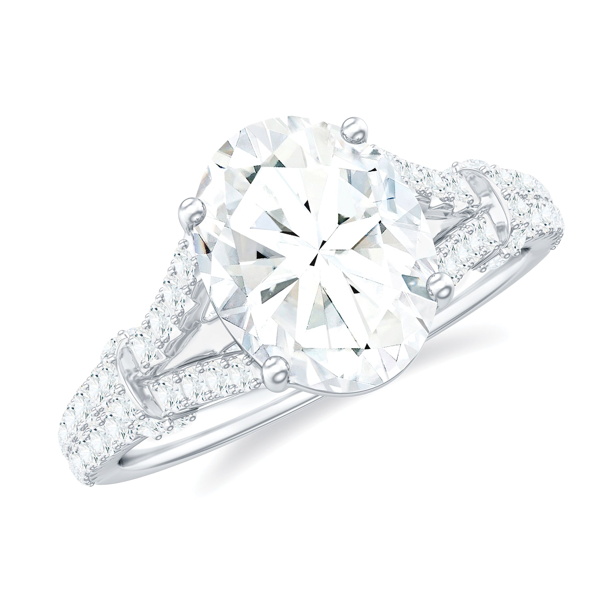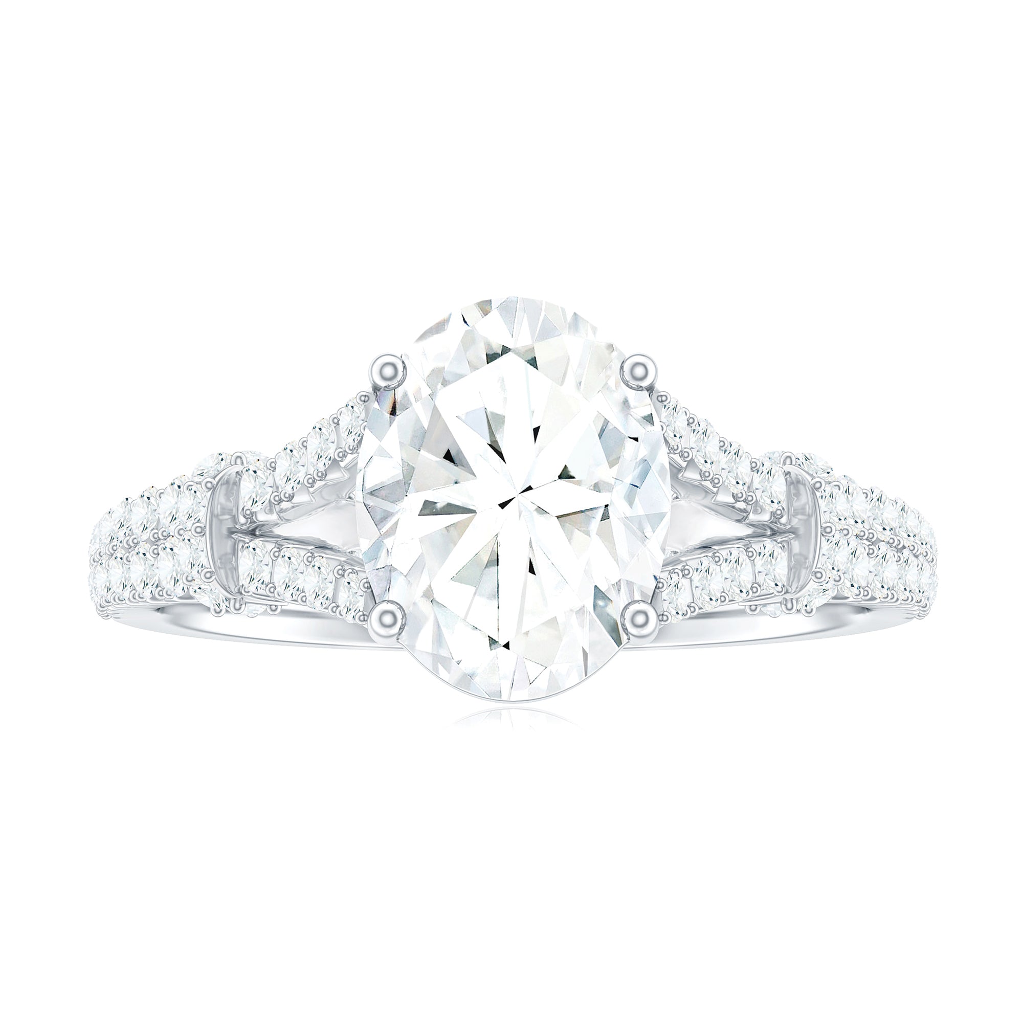 7X9 mm Oval Cut Moissanite Statement Engagement Ring with Split Shank