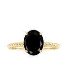This Solitaire Engagement Ring captures hearts with its simplicity and distinctive twisted rope style shank. Its effortless elegance and inviting design have resonated widely, establishing it as a standout piece in our collection. The ring features a 7x9 mm Oval Cut Black Onyx set at the center as Solitaire. A thoughtful element is incorporated, as concealed diamond stones are delicately placed beneath the central stone, adding an intimate feature that brings unexpected brilliance and sentimental charm, reminiscent of a whispered vow in this 2 Carat Engagement Ring. This delicate detail lends a handcrafted quality to the Black Onyx Solitaire Ring, setting it apart from traditional designs. Meticulously crafted for those who value beauty and significance, this Oval Cut Onyx Ring is a delightful choice for proposals, anniversaries, or even as a special gift for oneself. It is available in a range of metal colors and purity levels and is presented in an exquisite jewelry box, making it ready for gifting or personal enjoyment. Romantic, elegant, and refreshingly unique, this Womens Engagement Ring is designed for individuals who believe in love that deepens over time, much like a flourishing garden.