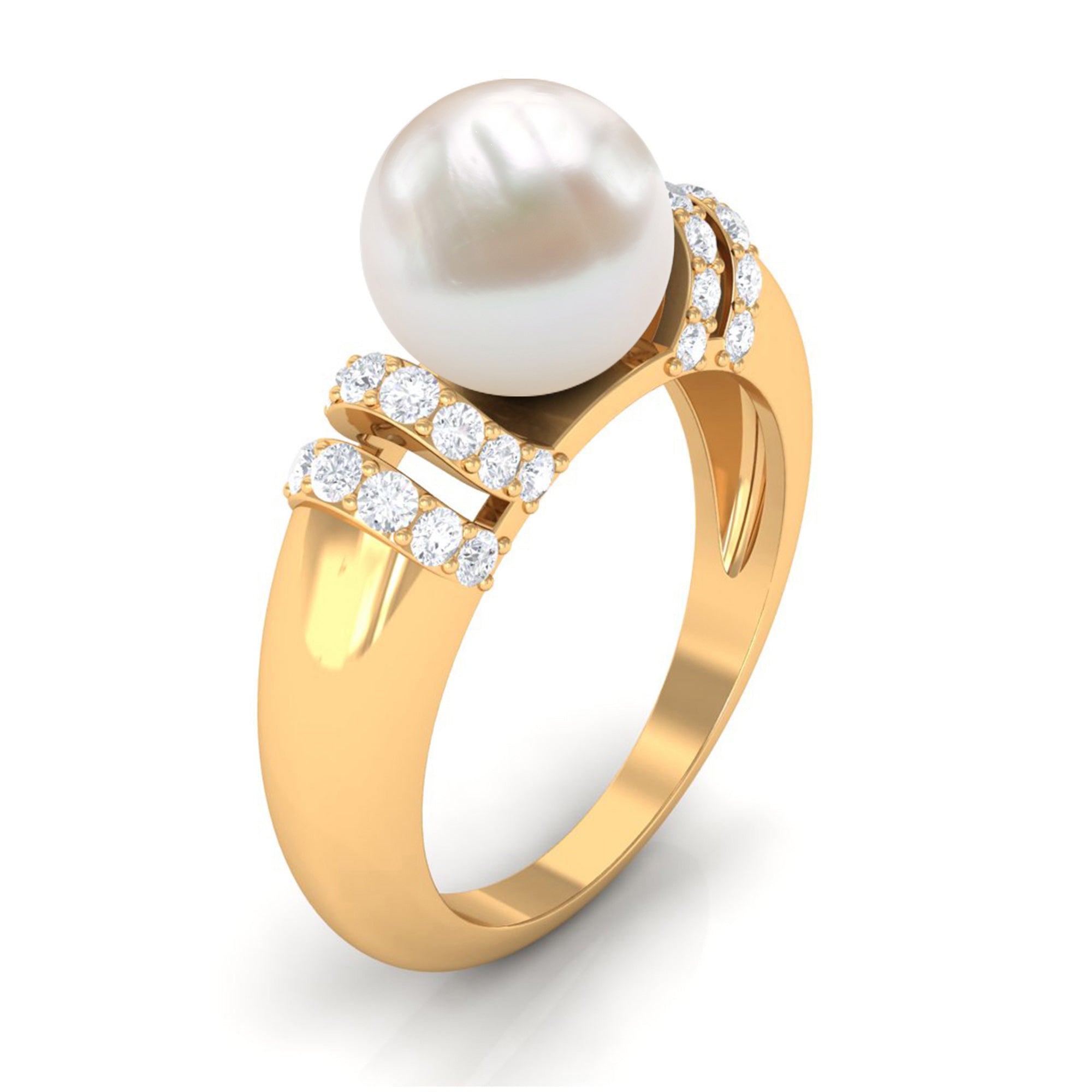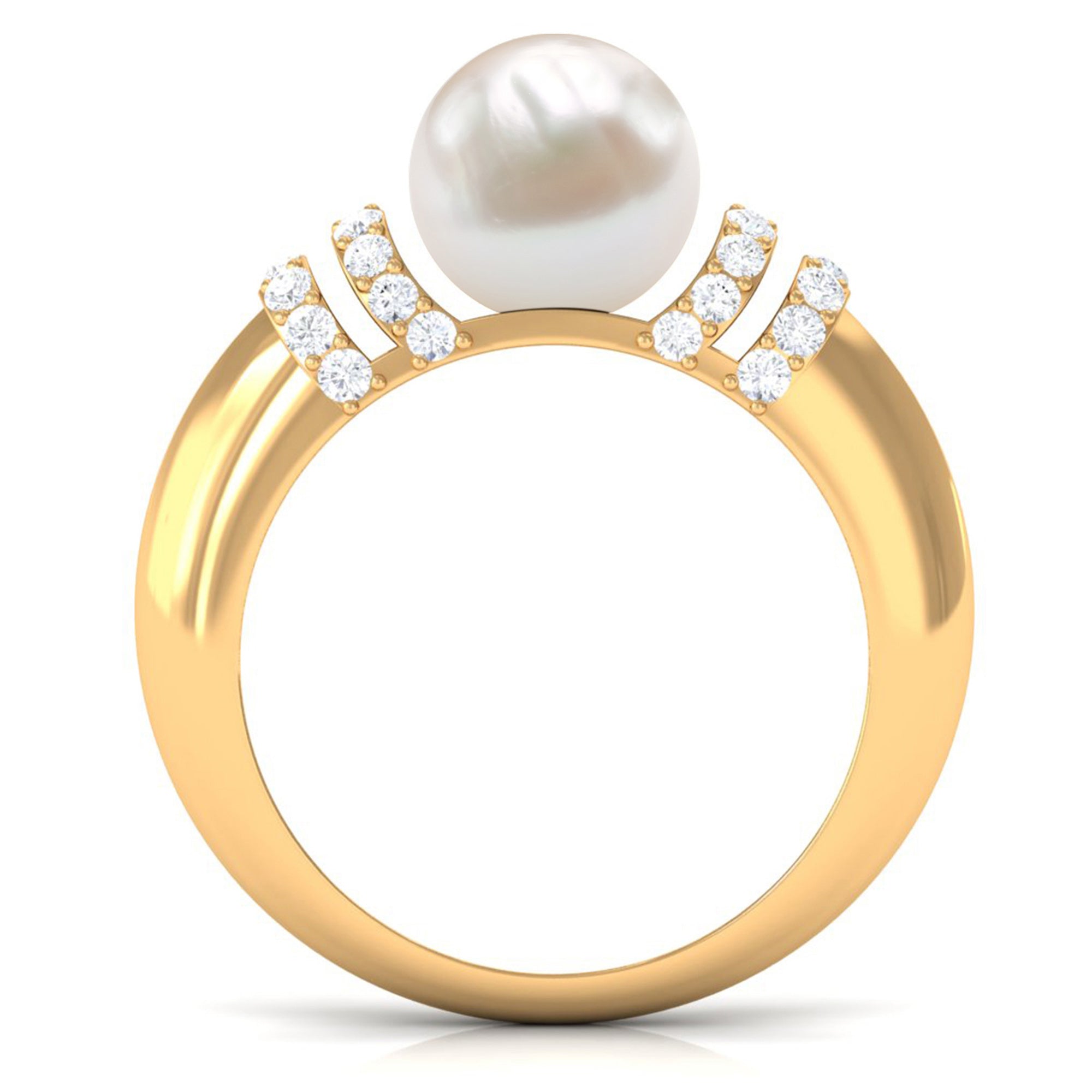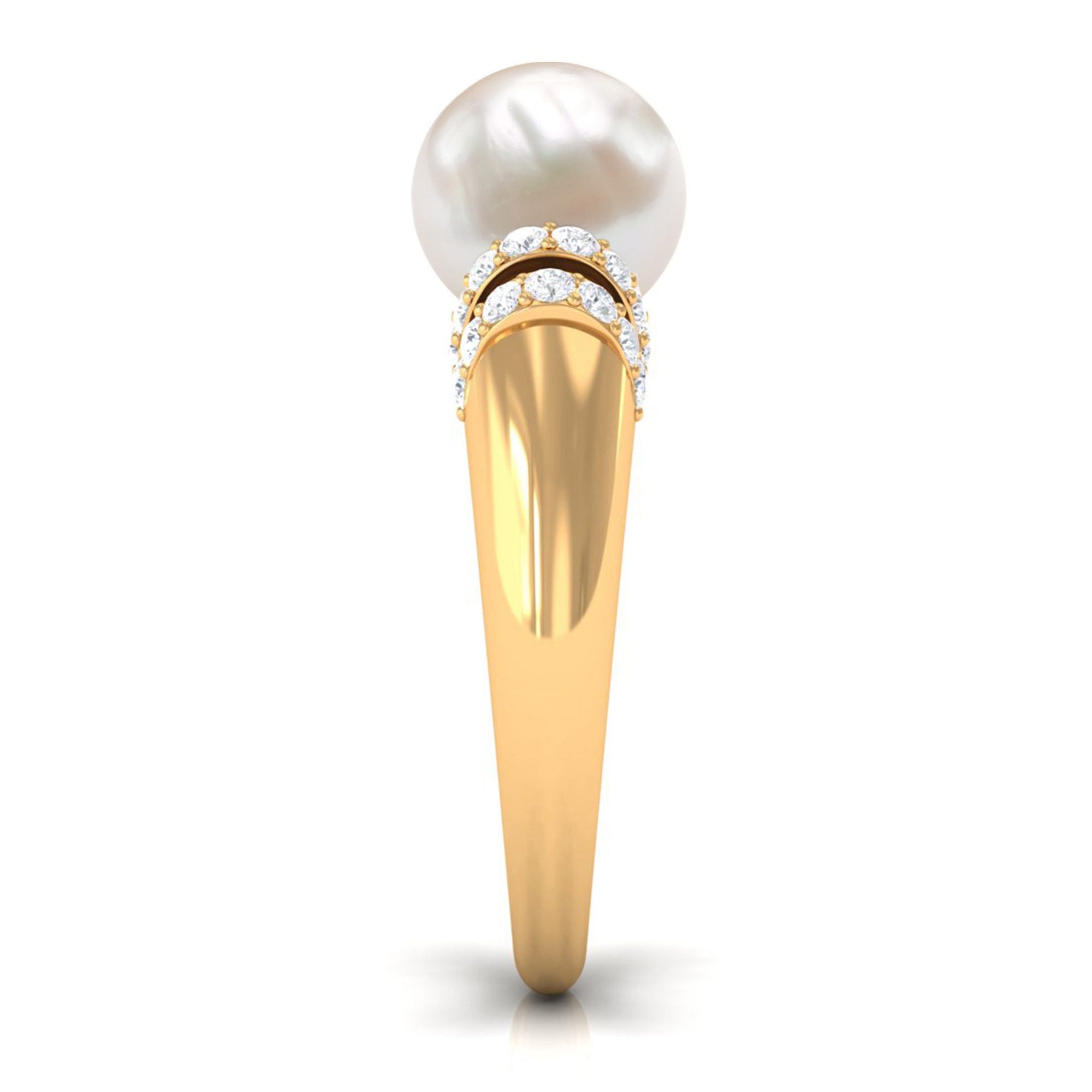 Looking for the perfect present for the love of your life, One thatll shine as bright as your love for her. This brilliant round shape Freshwater Pearl Engagement Ring is the perfect pick. Captivating Solitaire Engagement Ring is embellished with round shape Diamond held in Surface Prong Setting and crafted in gold metal to amplify the charm of this Ring.