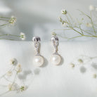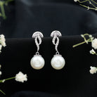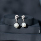 8MM Freshwater Pearl Drop Earrings with Diamond Accents