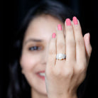 It is a Gold Ring consisting of a Round Shape Freshwater Pearl as Solitaire with Round Shape Diamond gemstones as Accent. It is an Engagement Ring for Women.