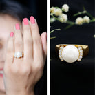 8.25 CT Freshwater Pearl Solitaire with Diamond Collar Ring