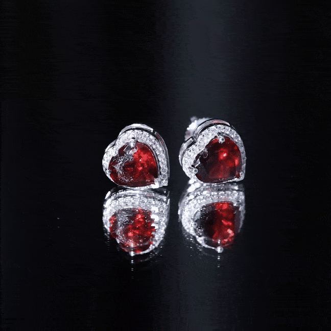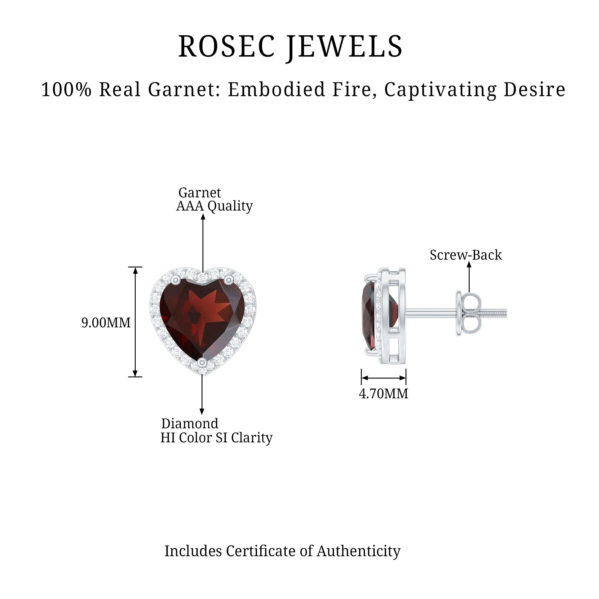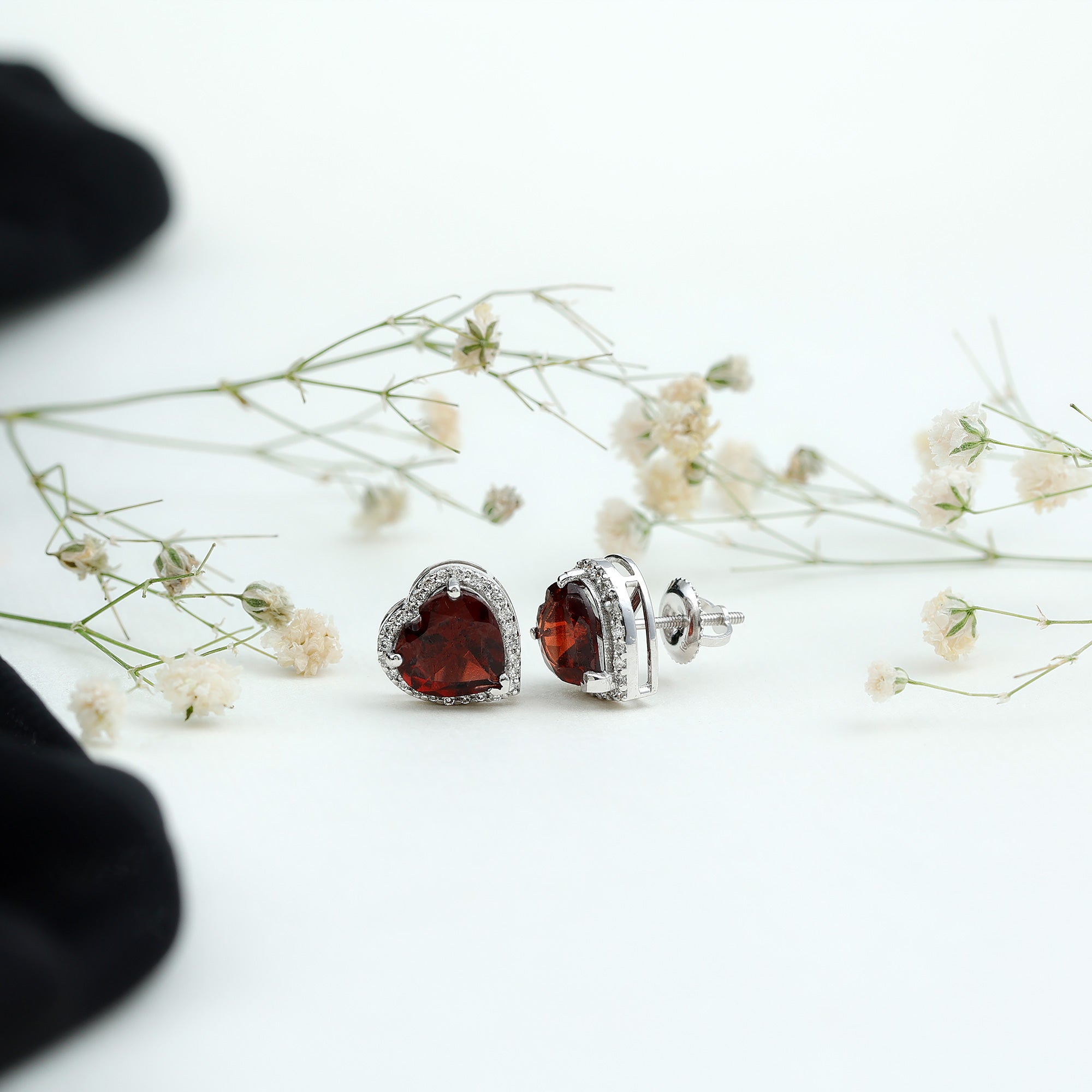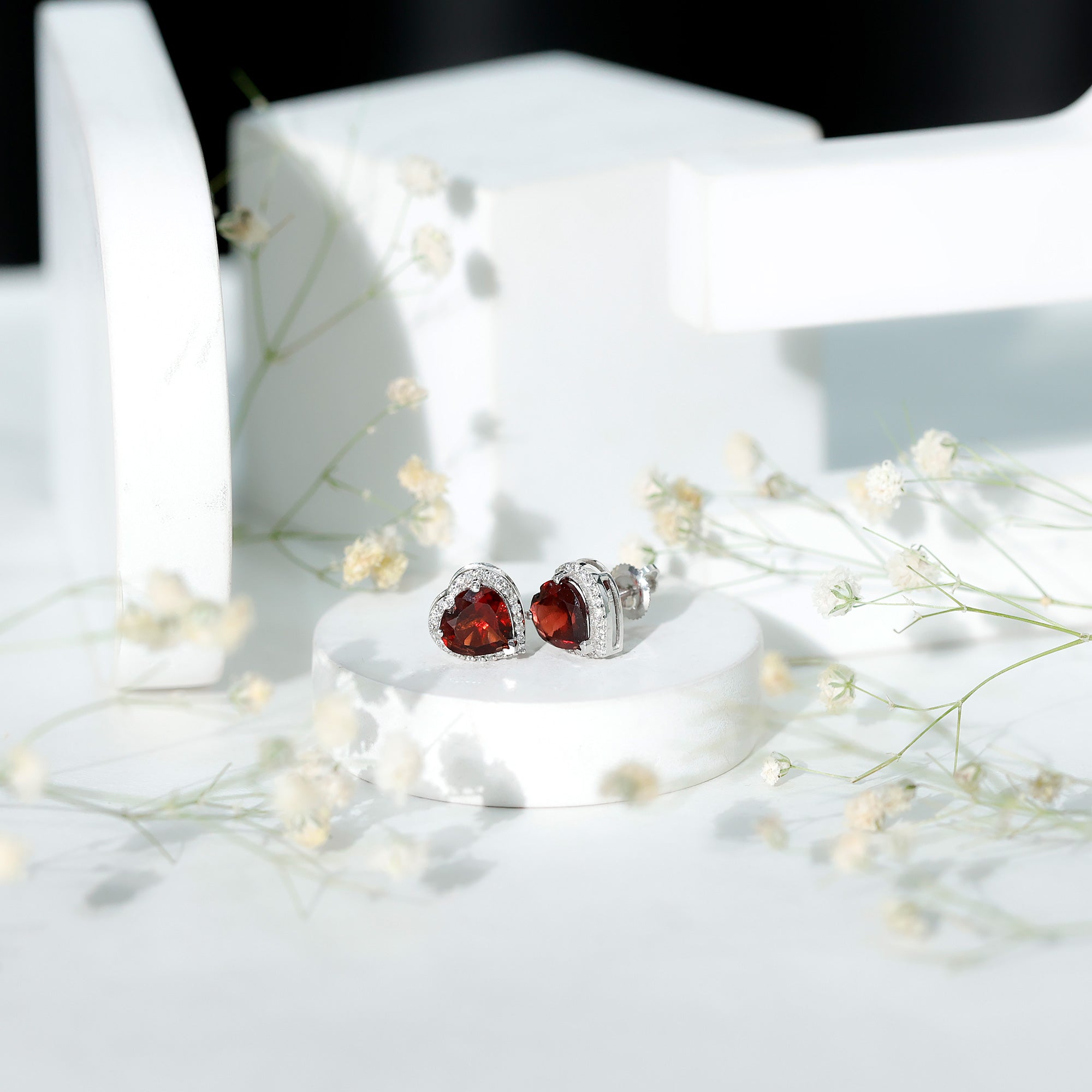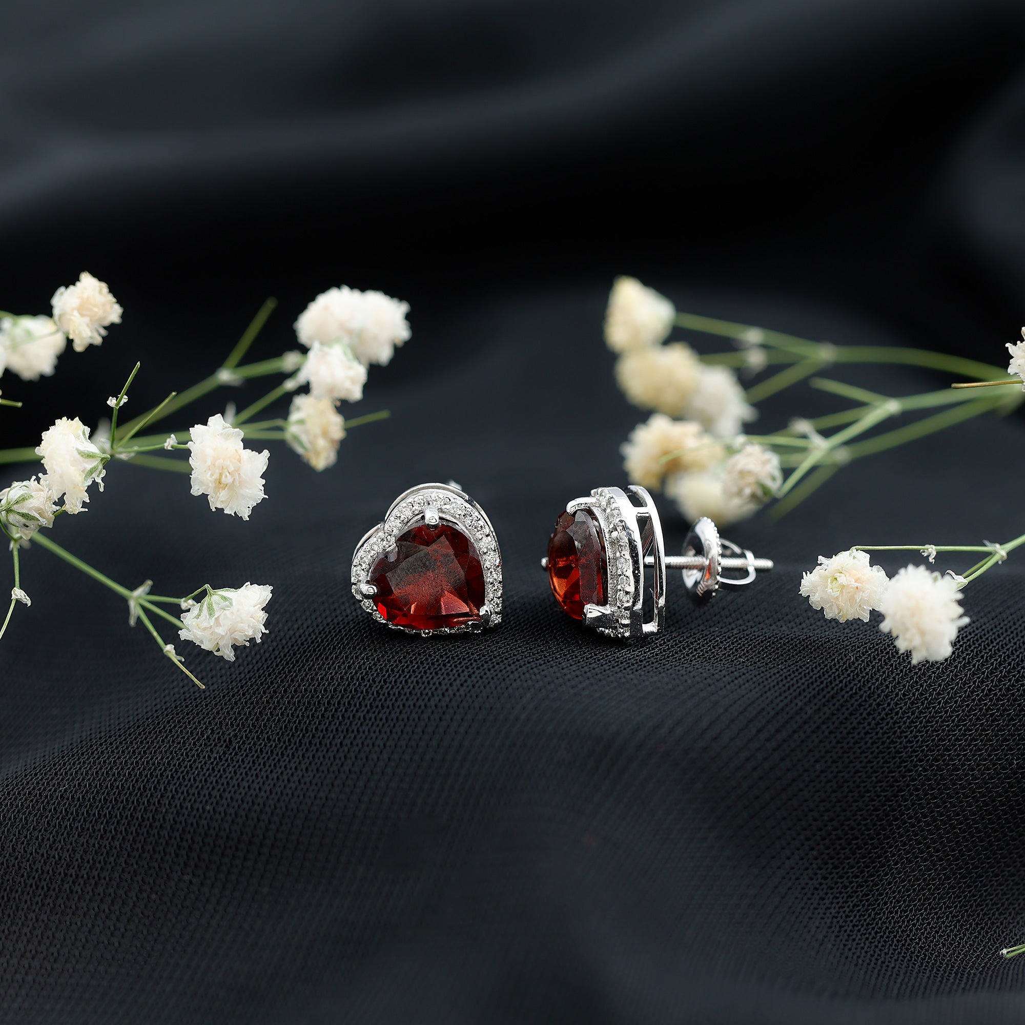 8.25 CT Heart Shape Garnet Stud Earrings with Diamond Halo