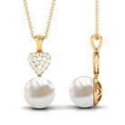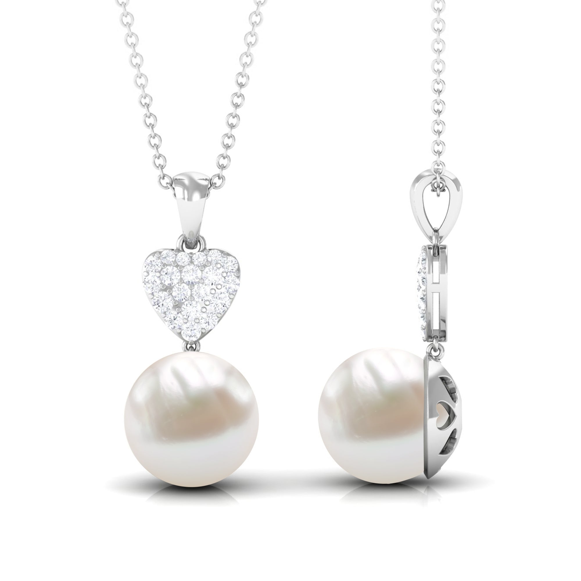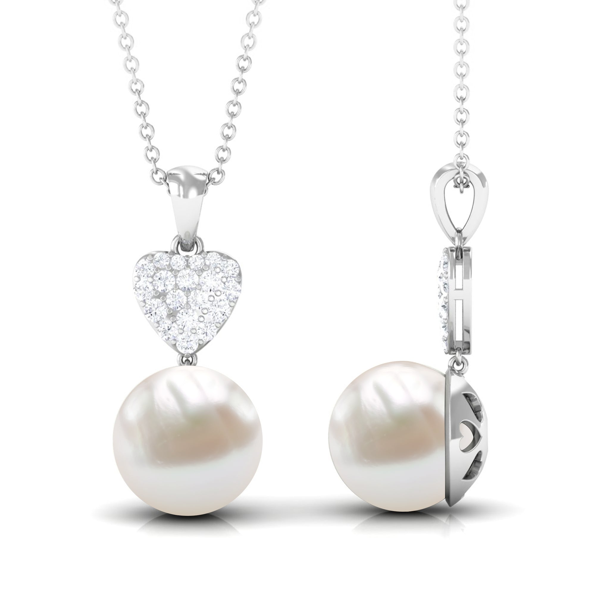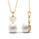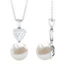 8.5 CT Bead Set Freshwater Pearl and Diamond Heart Dangle Pendant Necklace