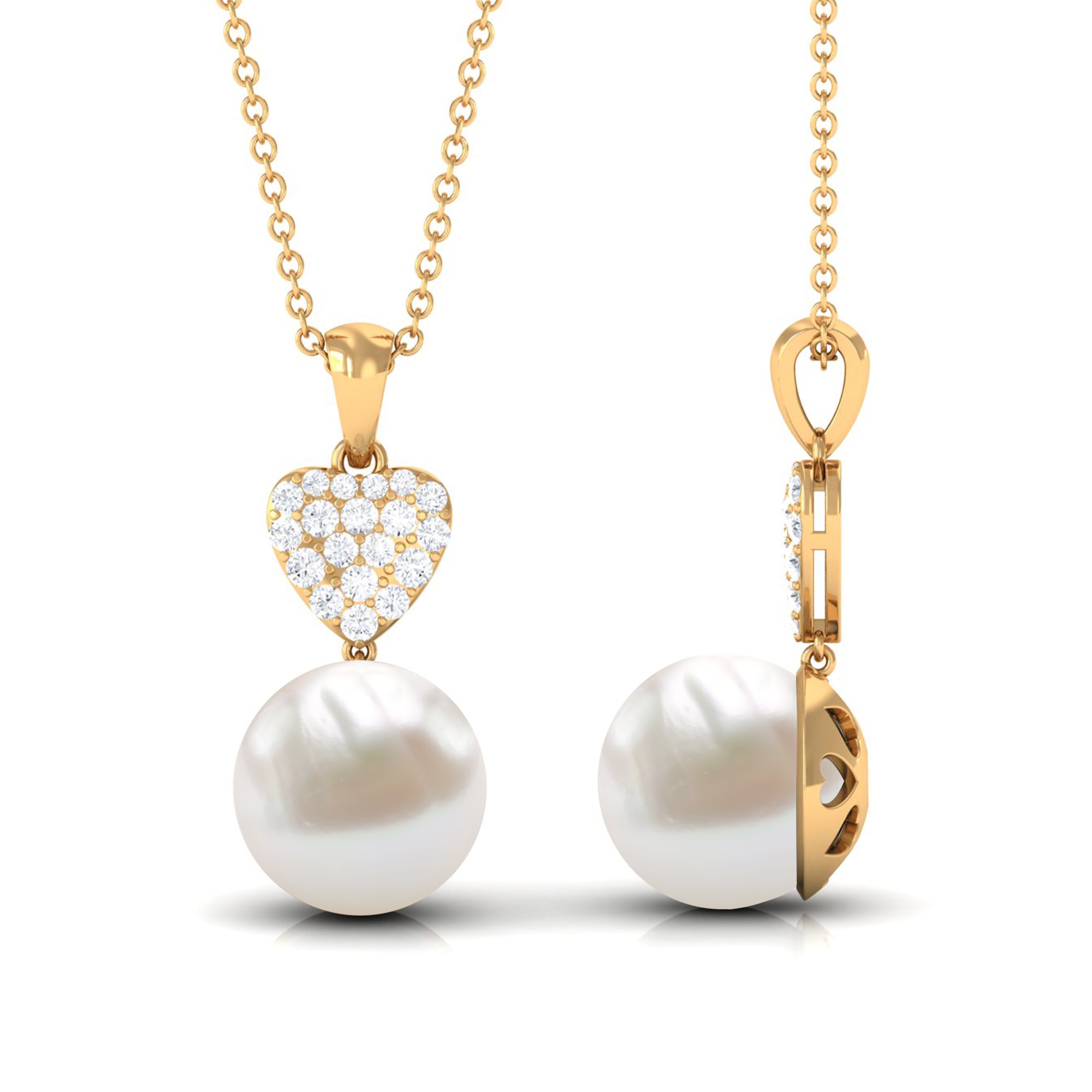 Embrace a heart full of love and compassion with this stunning Freshwater Pearl Heart Pendant, featuring a perfectly round freshwater pearl nestled within a heart-shaped motif, adorned with sparkling Diamond accents at its pinnacle. This solid gold pendant is guaranteed to elevate your style quotient to new heights. With a total weight of 8.50 Carat and a superior AAA quality rating, this Pendant is a true testament to our commitment to excellence. All of our gemstones are certified and undergo rigorous quality checks to ensure their authenticity and value.
