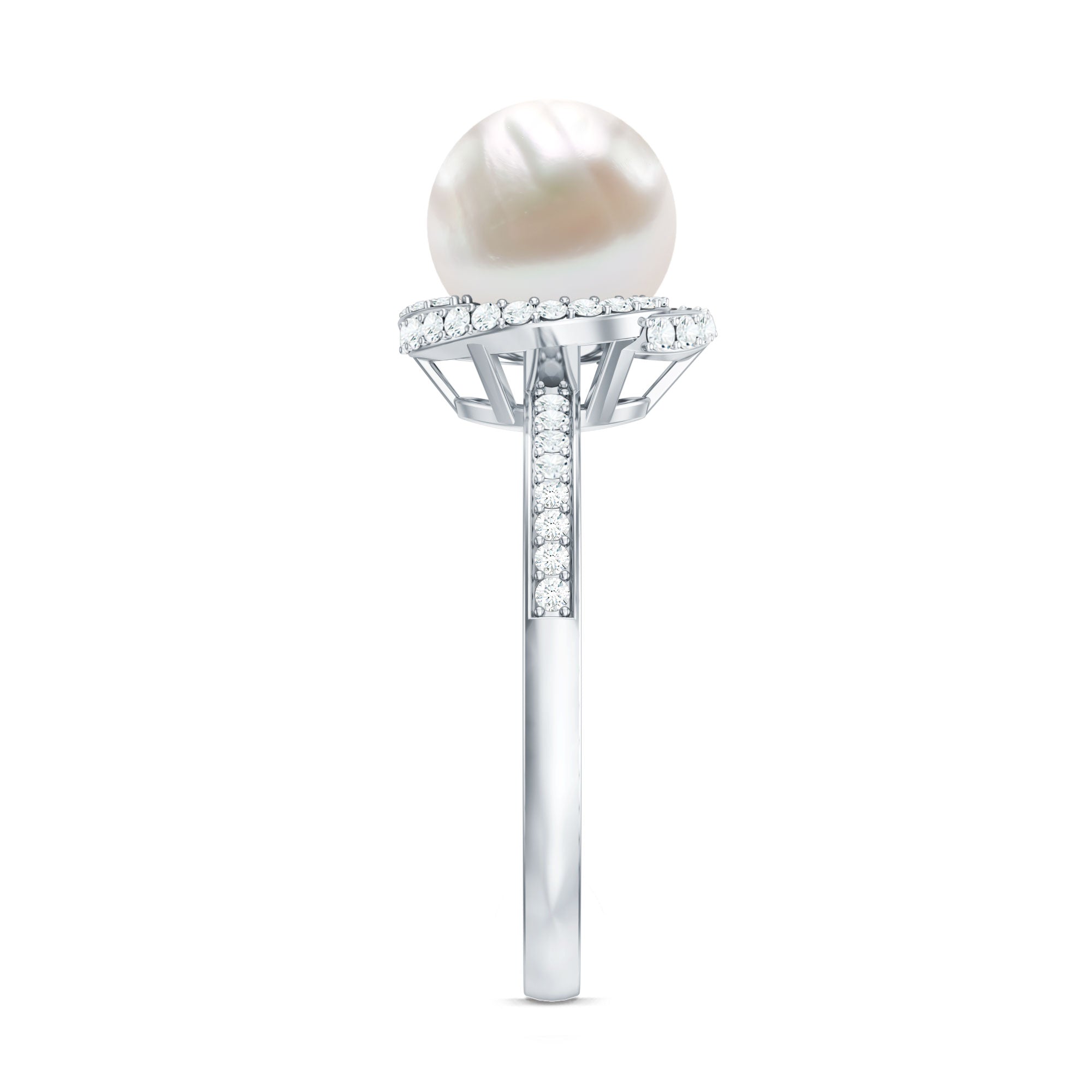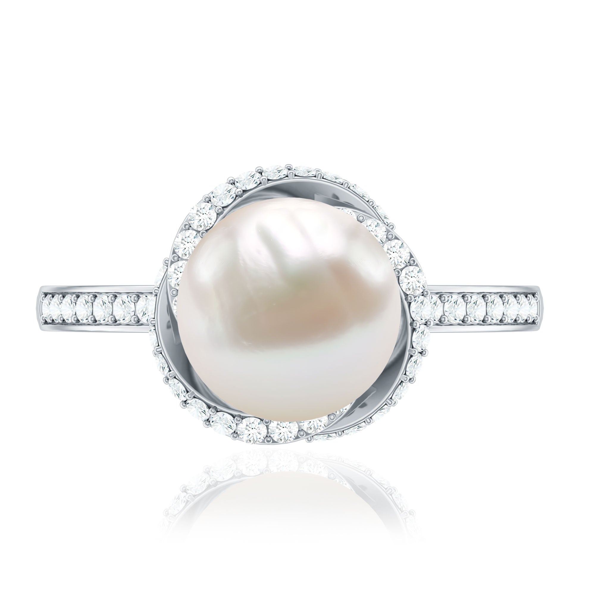 8 CT Freshwater Pearl Swirl Engagement Ring with Diamond Side Stones