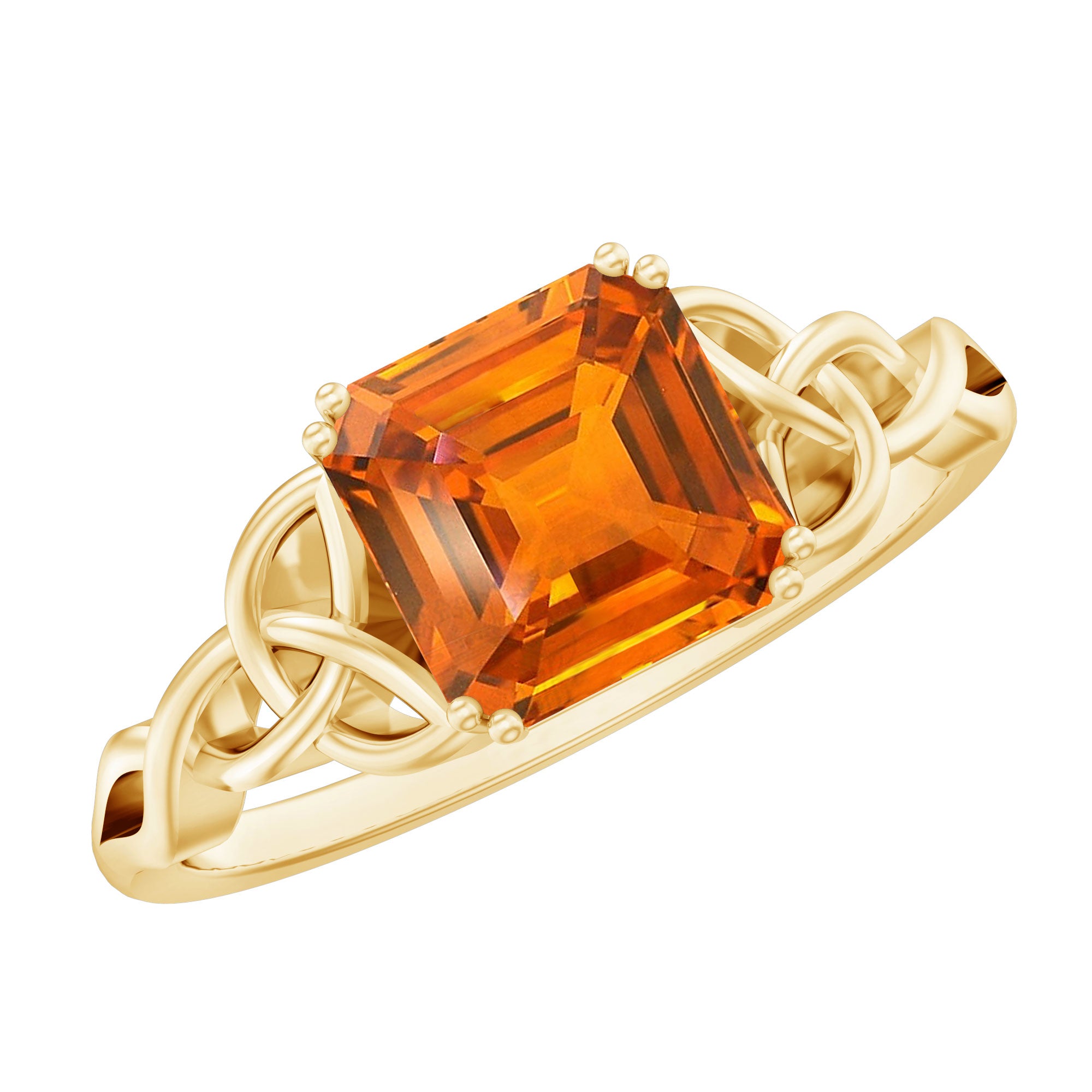 8 MM Asscher Cut Lab Grown Orange Sapphire Solitaire Celtic Engagement Ring