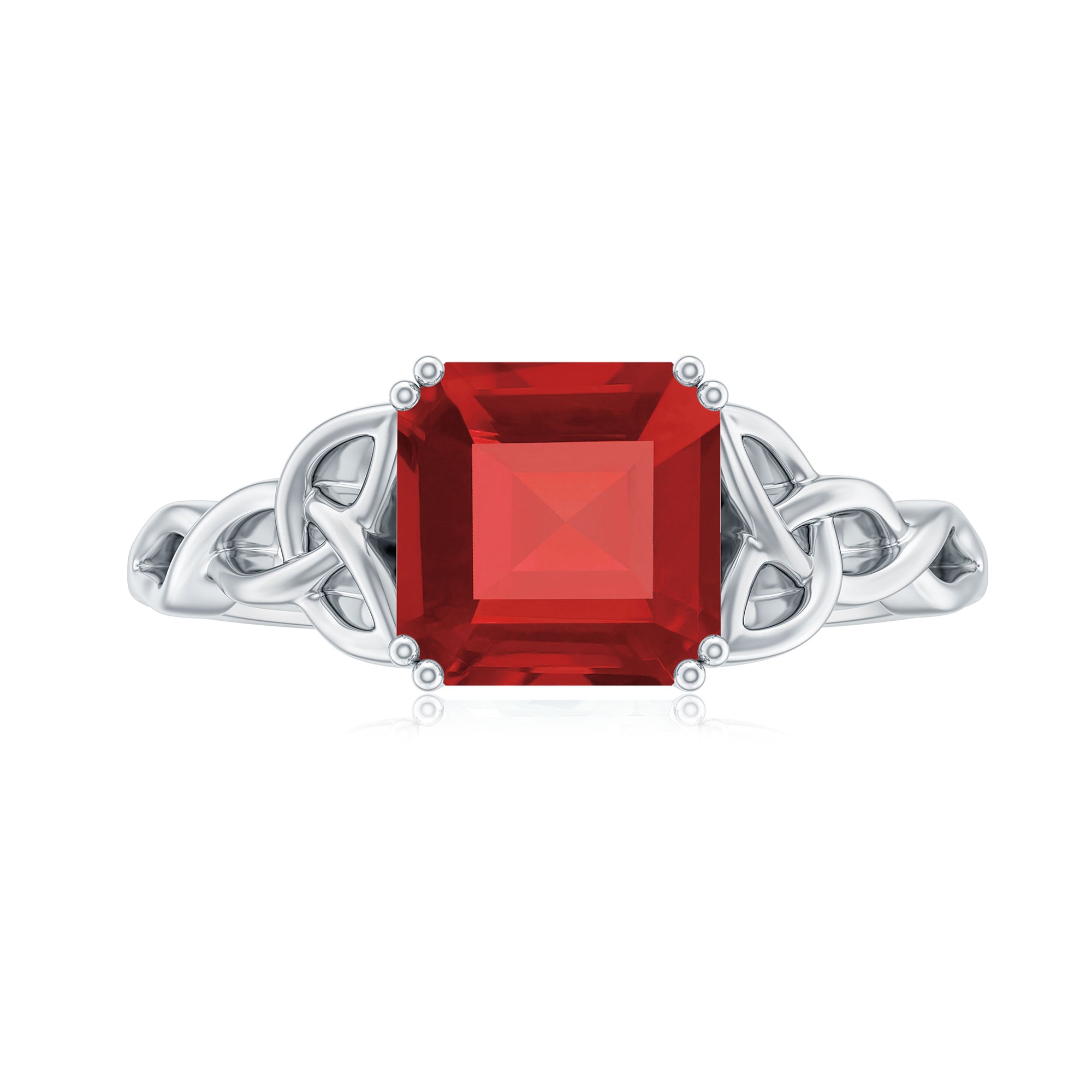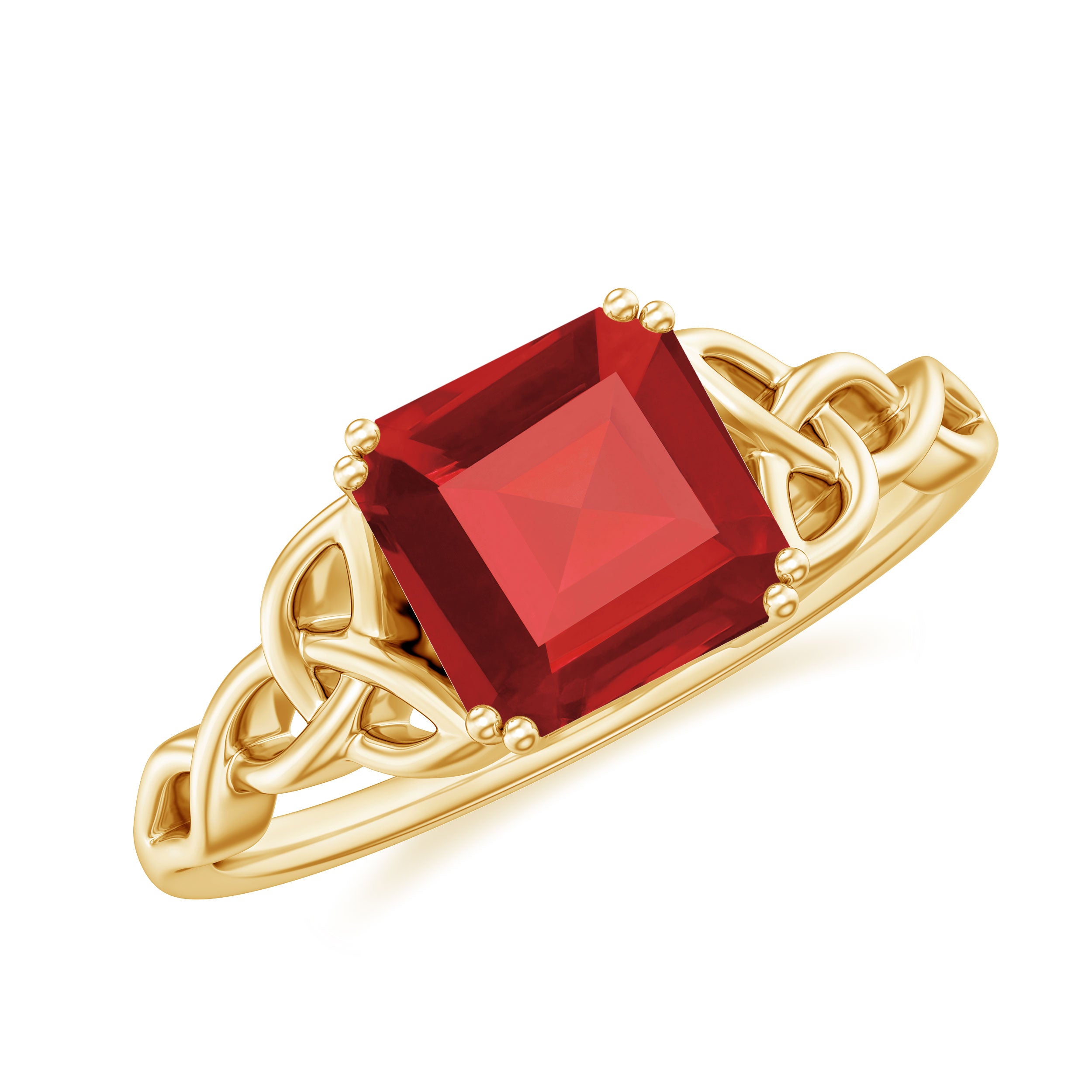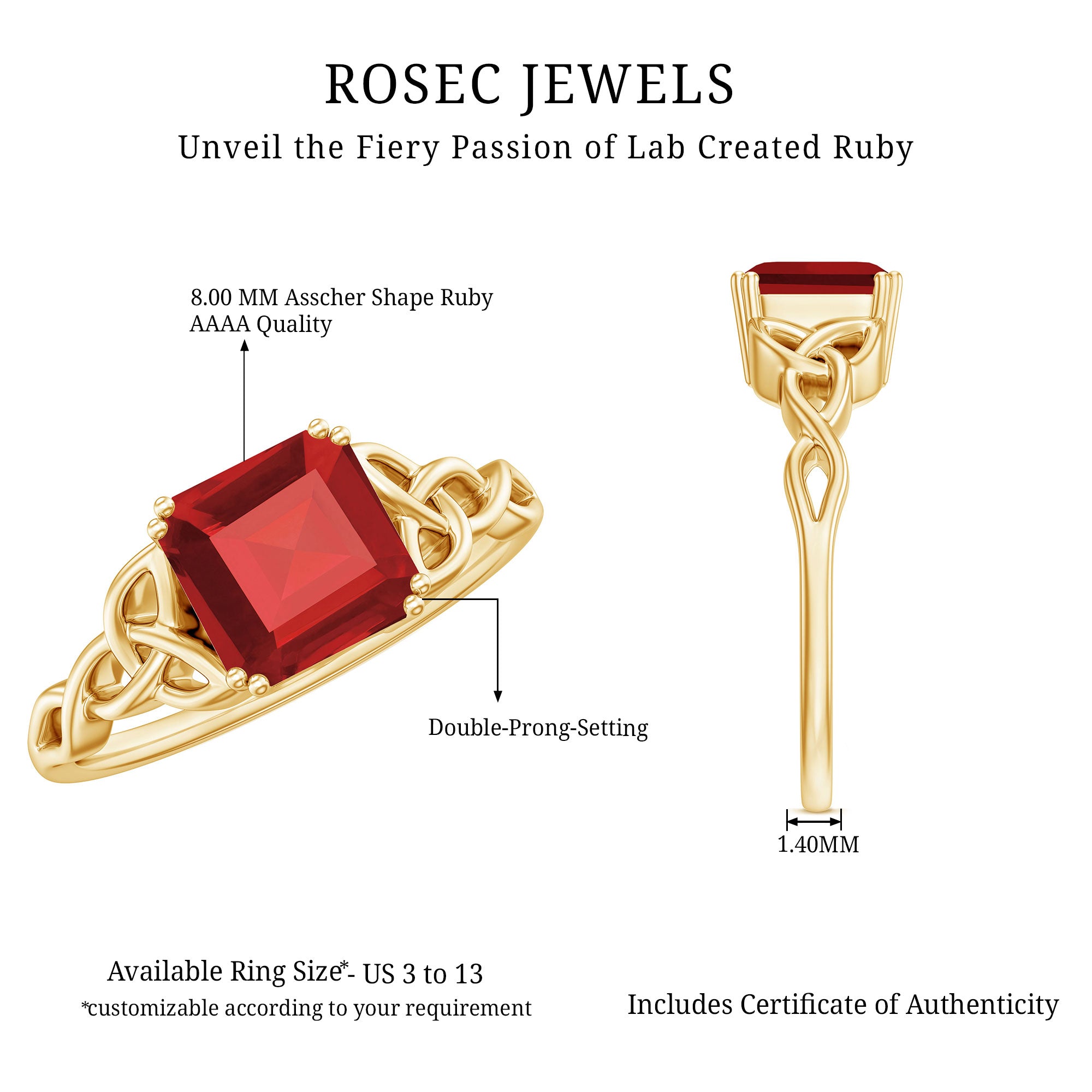 8 MM Asscher Cut Lab Grown Ruby Solitaire Celtic Ring