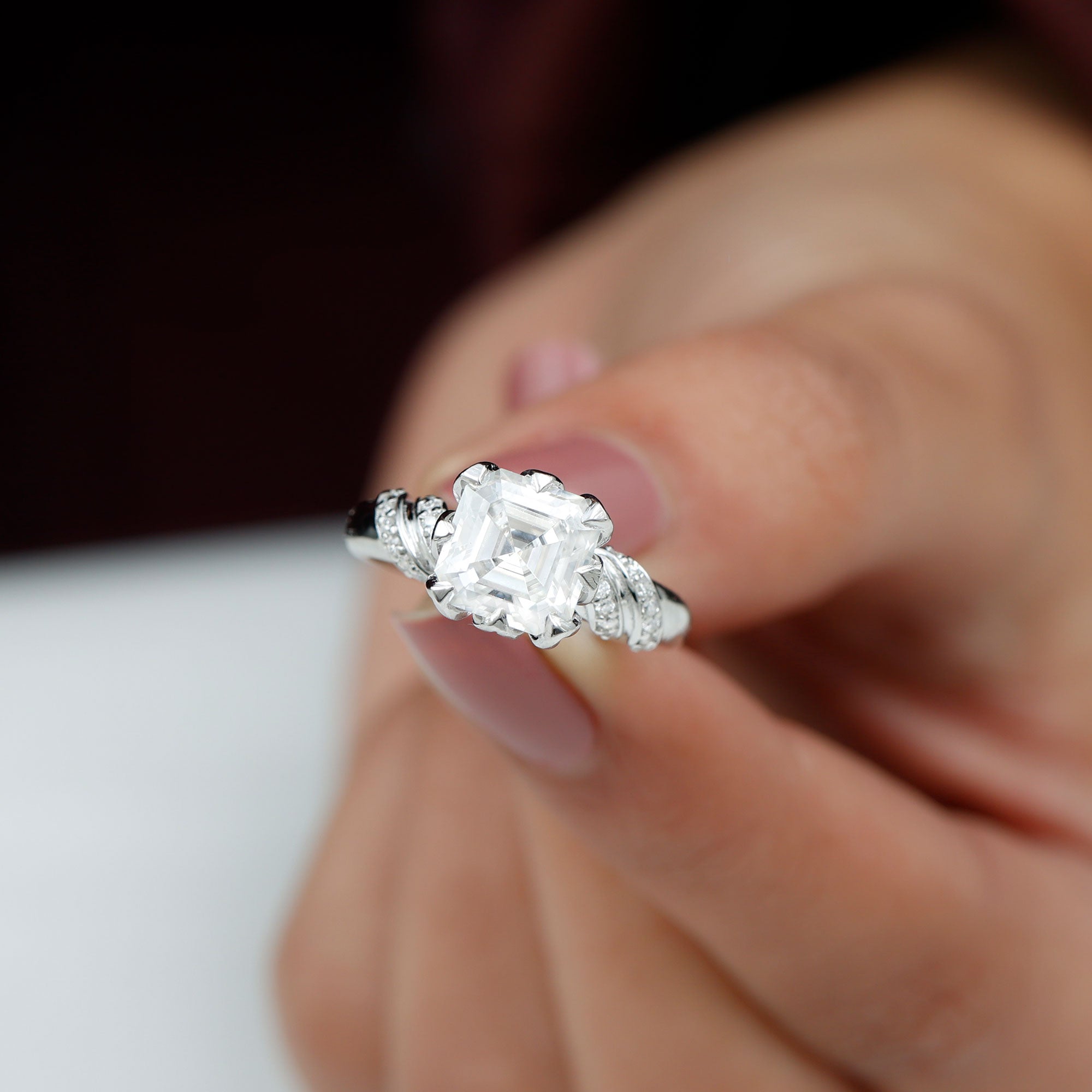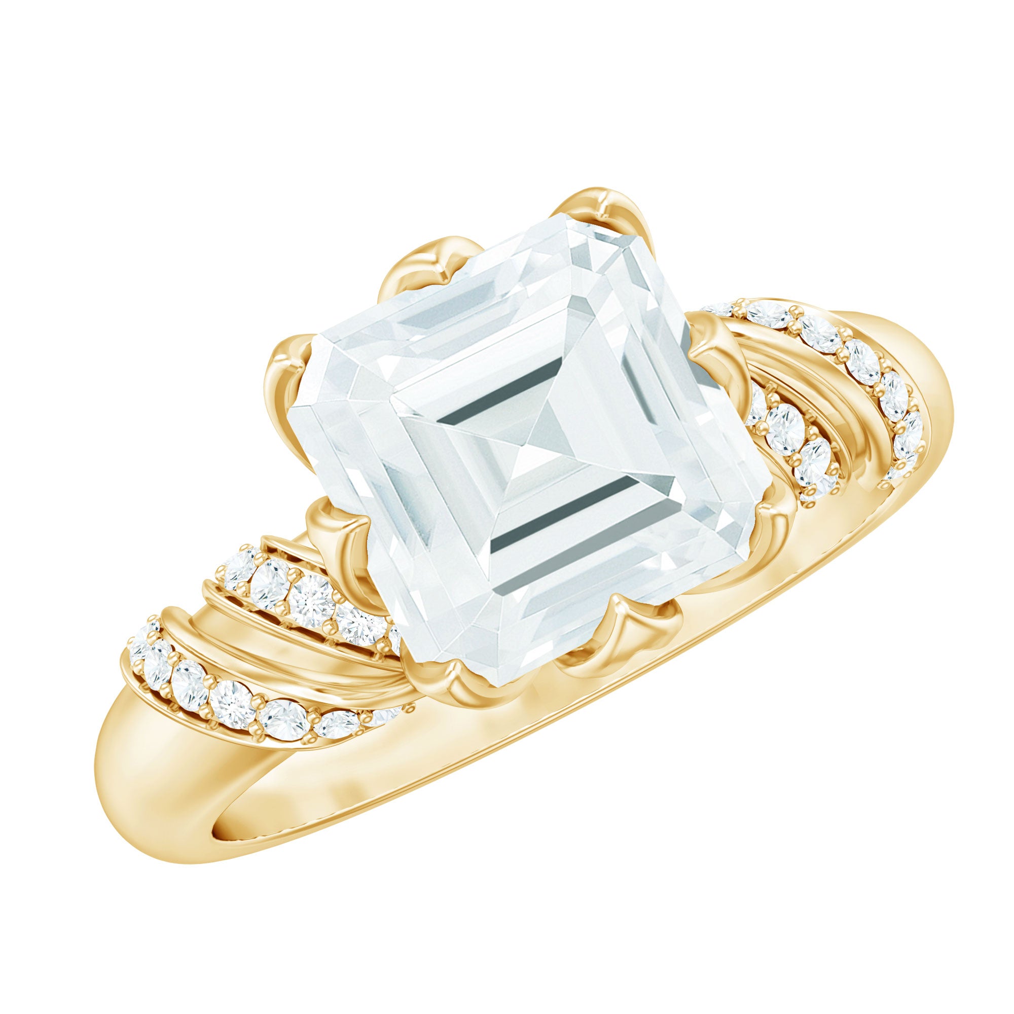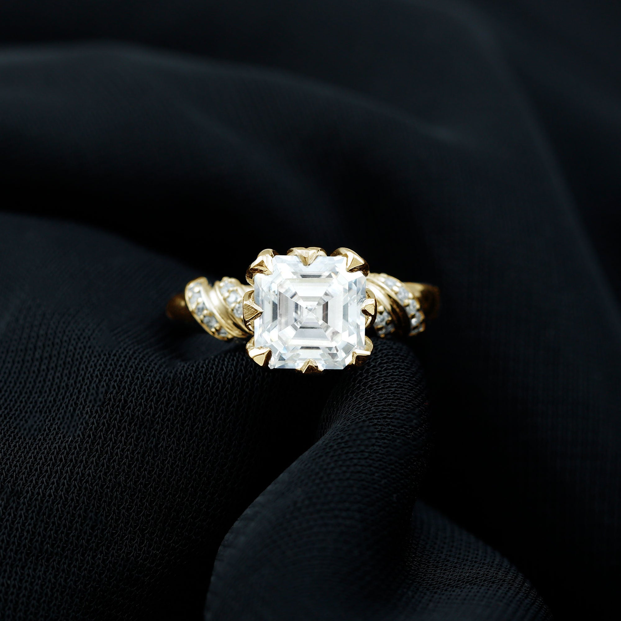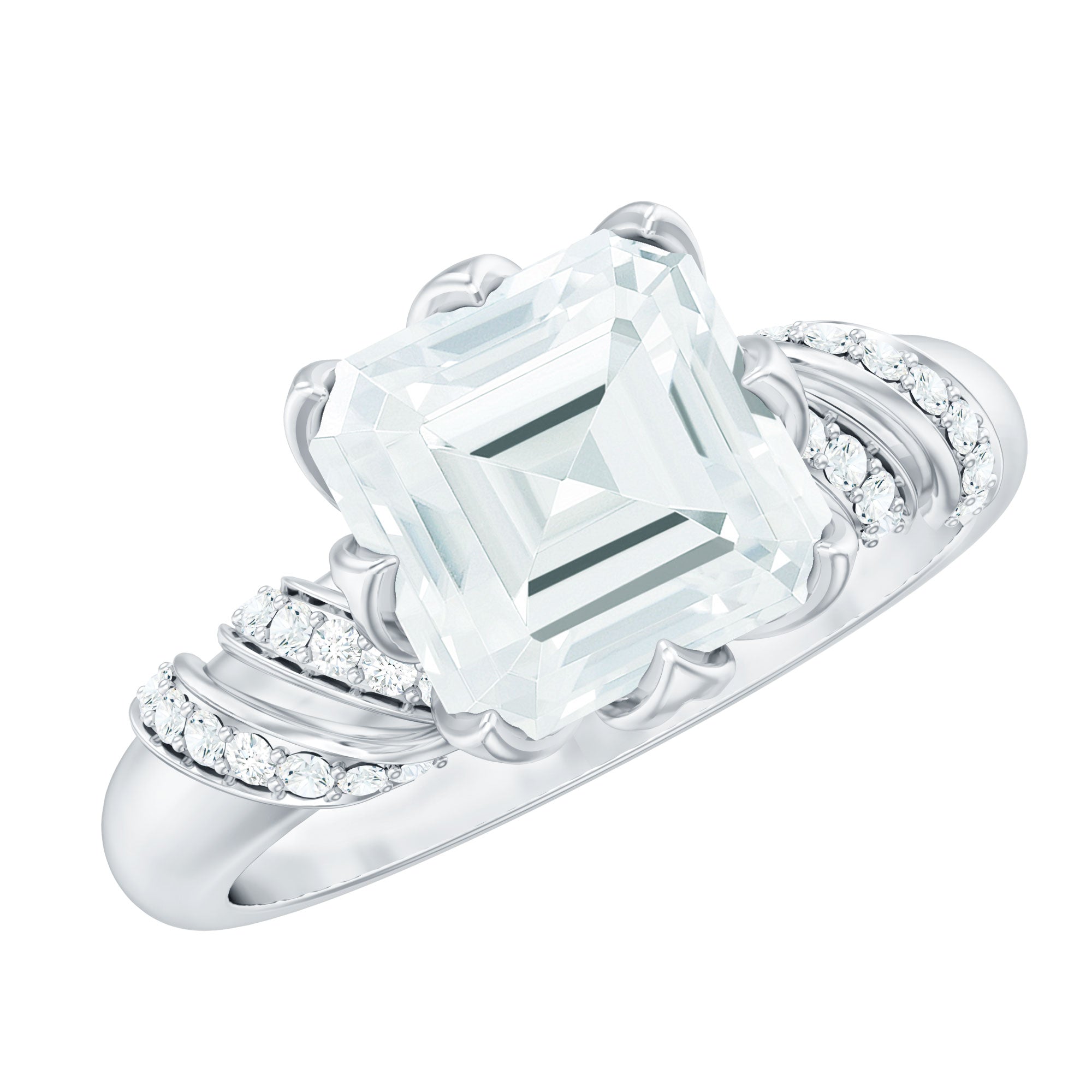 8 MM Asscher Cut Moissanite Solitaire Engagement Ring in Petal Prong Setting