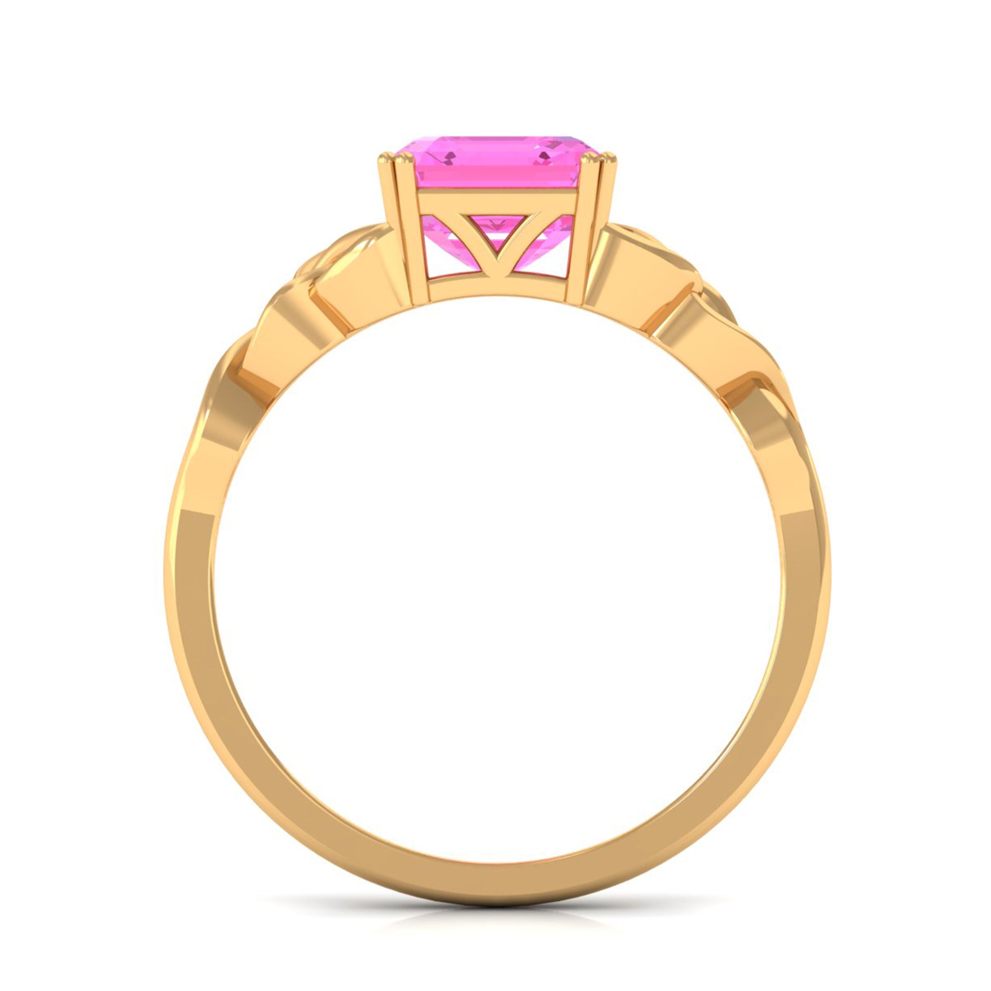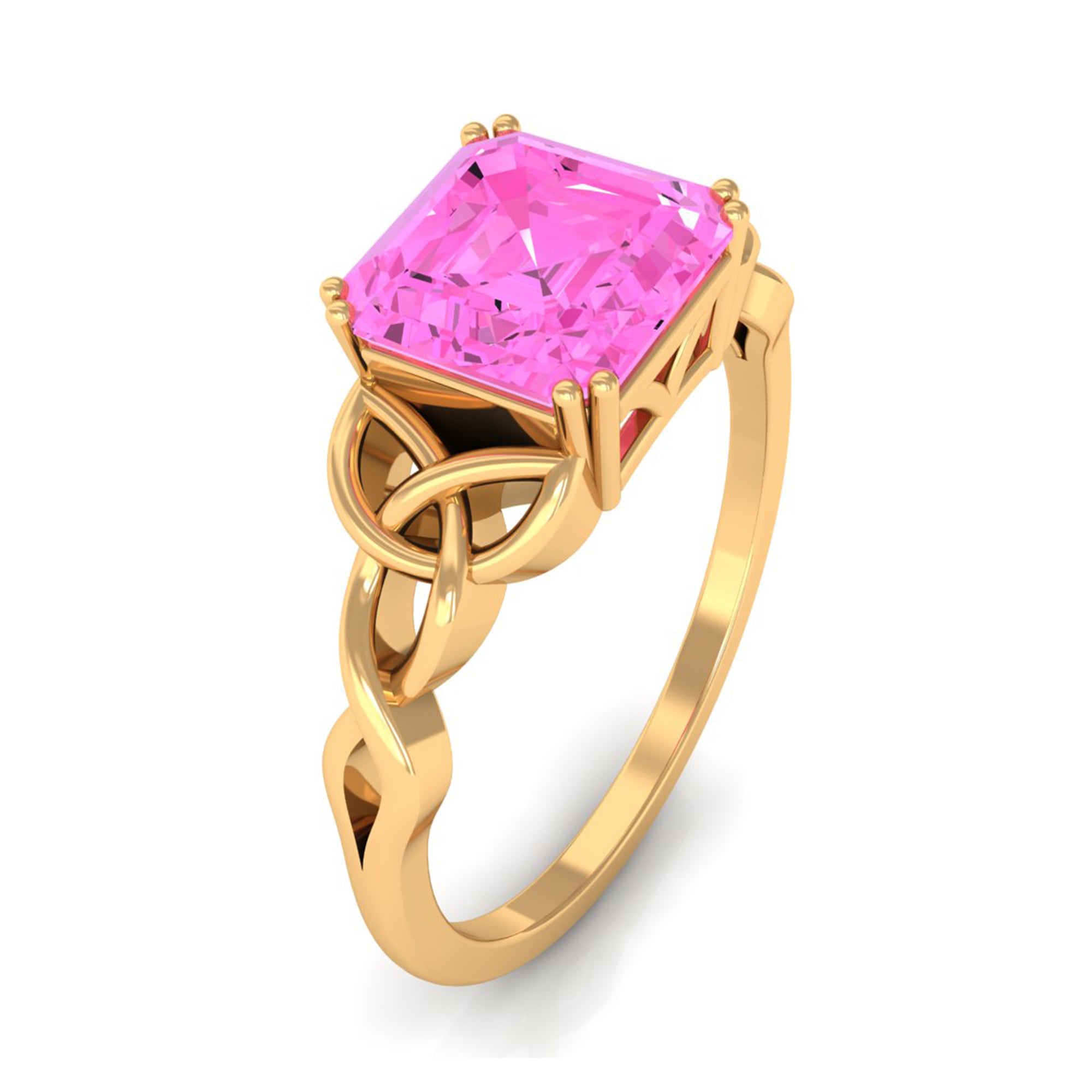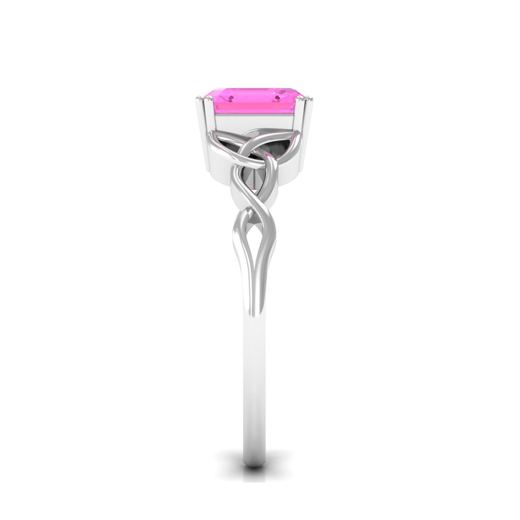 Asscher Cut Lab Grown Pink Sapphire Solitaire Celtic Knot Ring