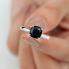 8 MM Cushion Cut Black Spinel Ring with Surprise Diamond