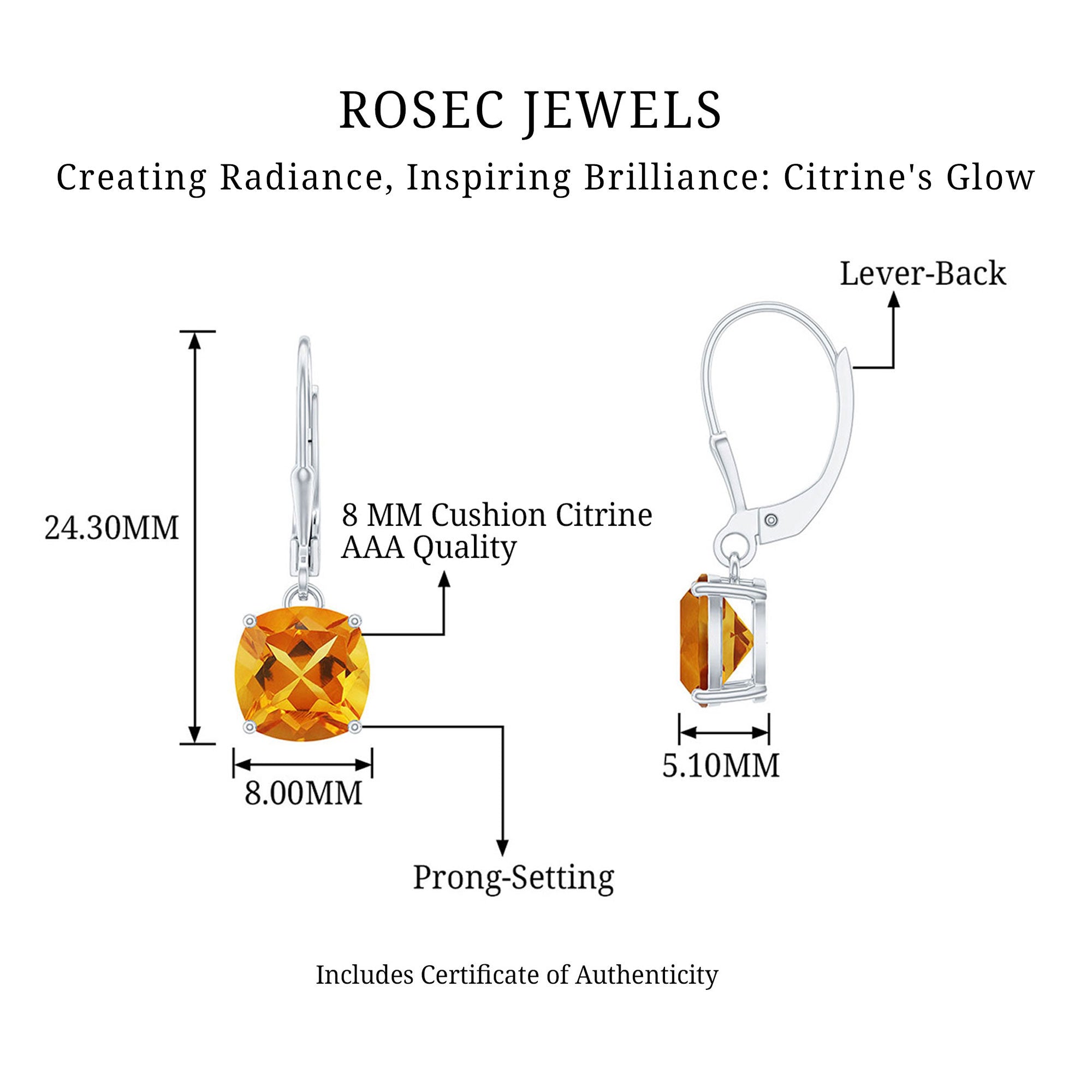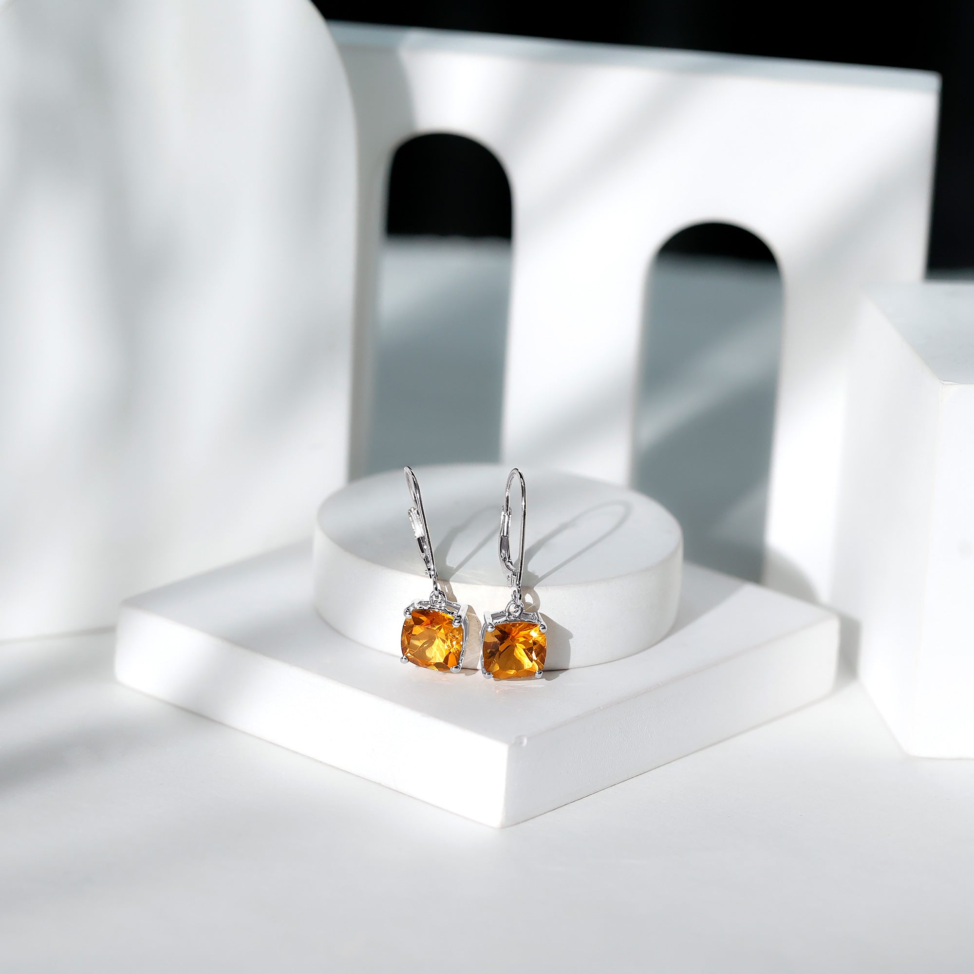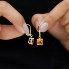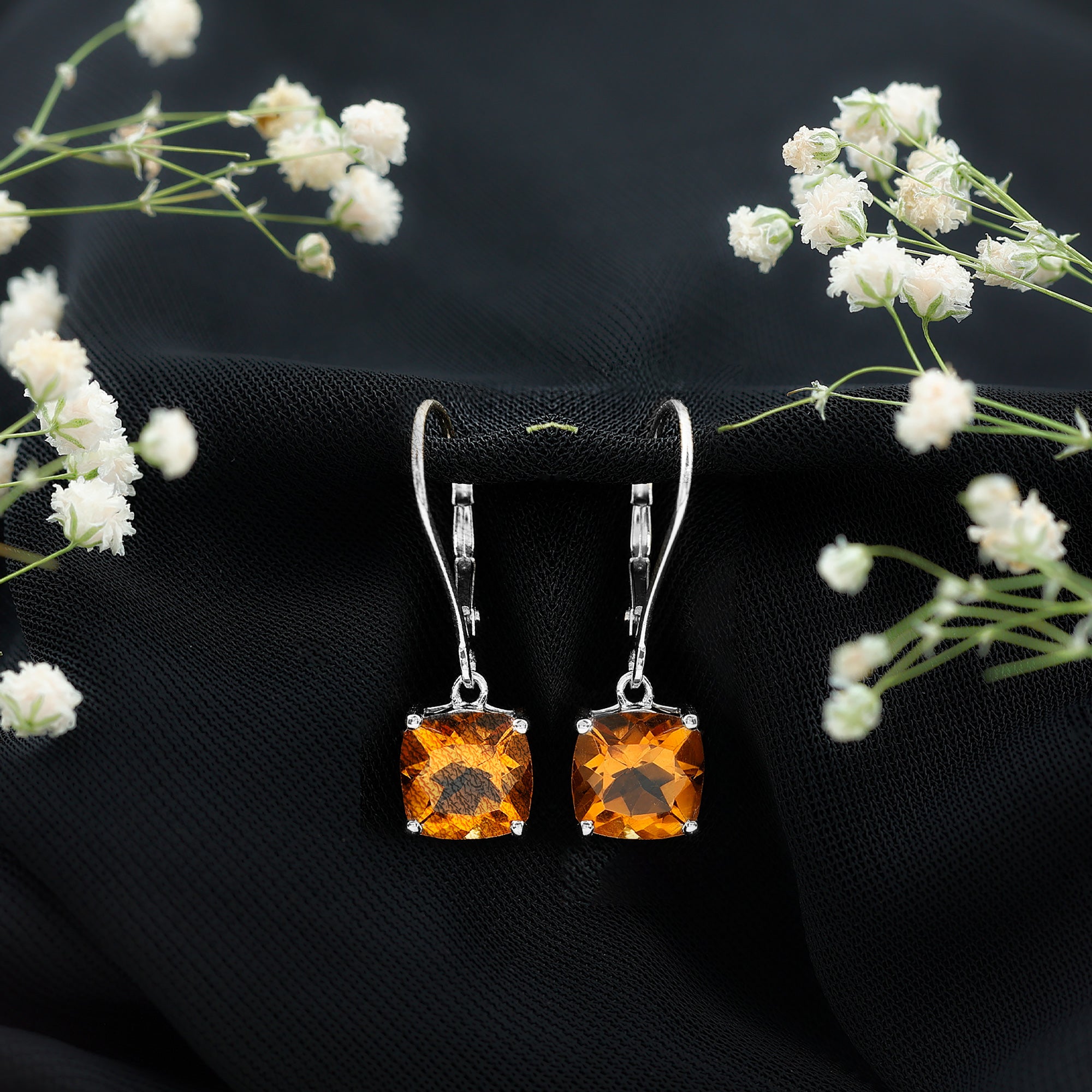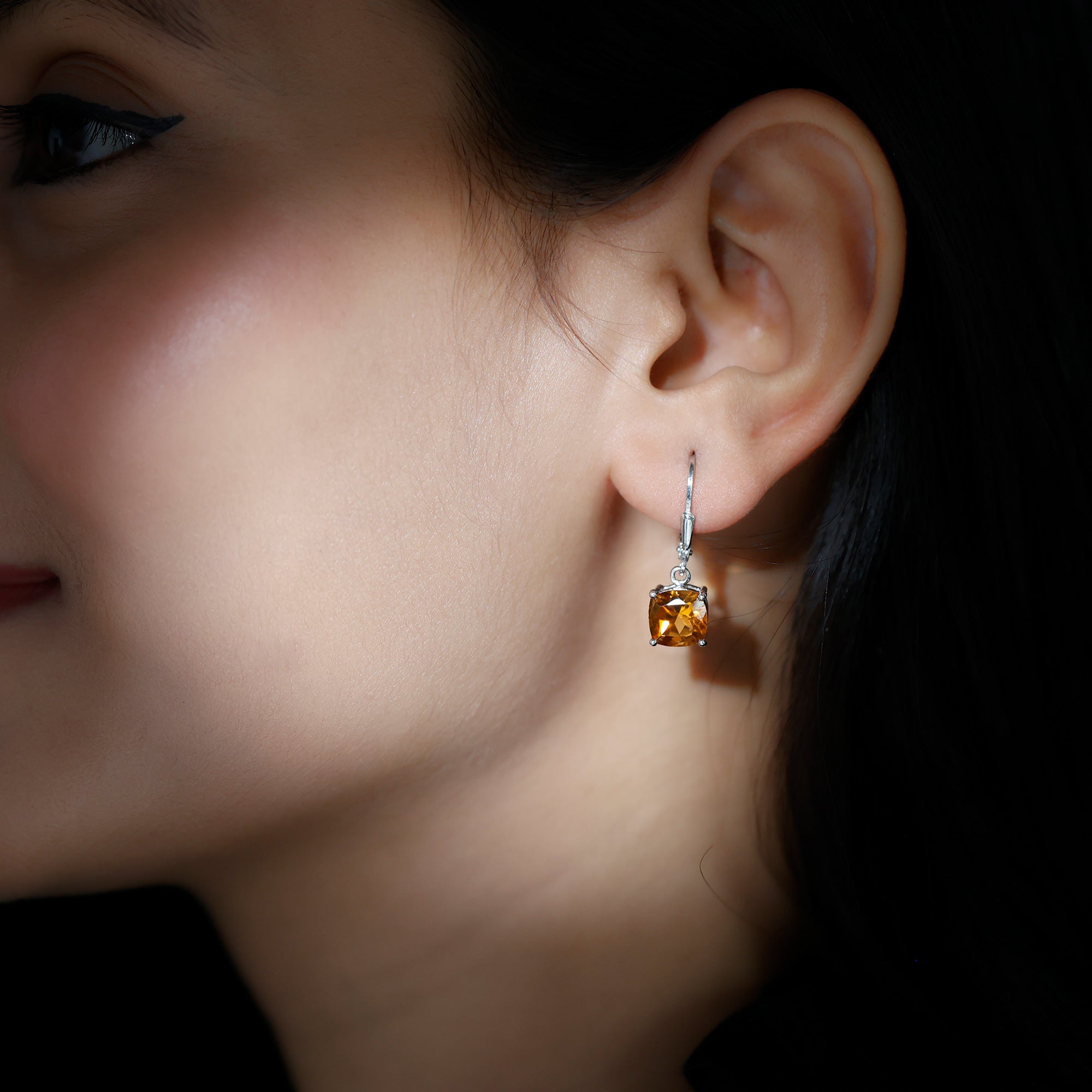 8 MM Cushion Cut Citrine Solitaire Drop Earrings