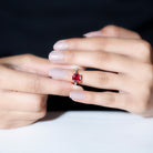 Capture attention with this elegant Solitaire Ring, showcasing a Round Cut Created Ruby delicately nestled in a secure 4 Prong Setting, embellished with a Simple Band. This dainty Red Gemstone Ring is designed to make her feel like royalty on her special Engagement Day.