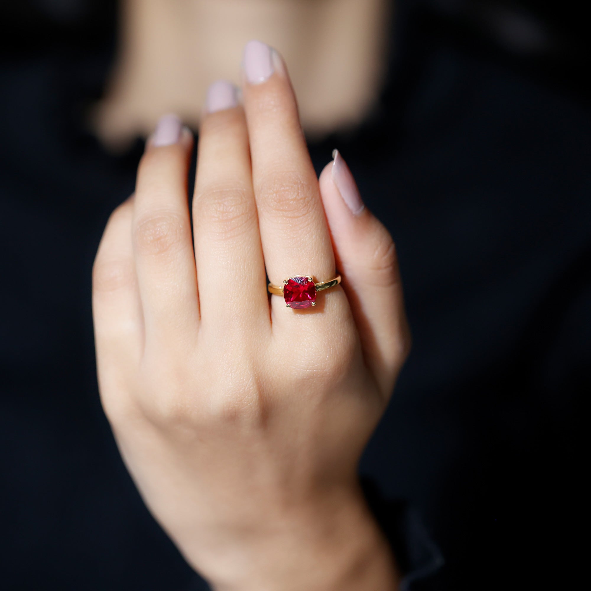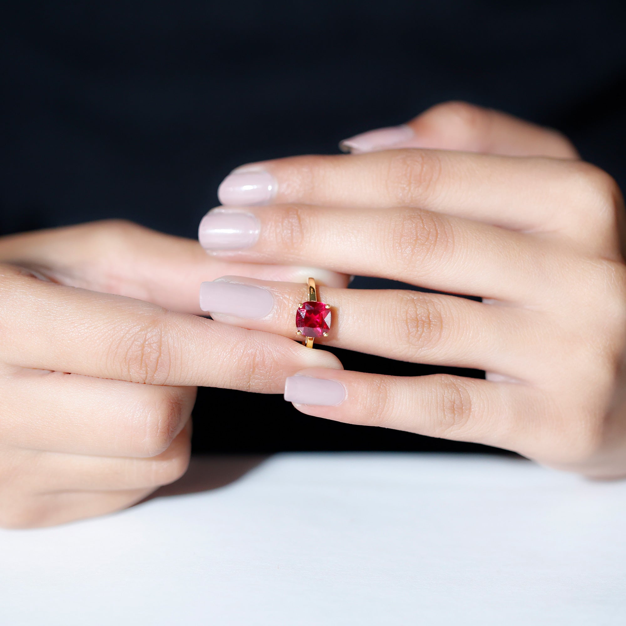 8 MM Cushion Cut Created Ruby Solitaire Ring