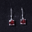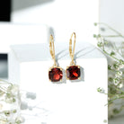 8 MM Cushion Cut Garnet Solitaire Drop Earrings with Lever Back