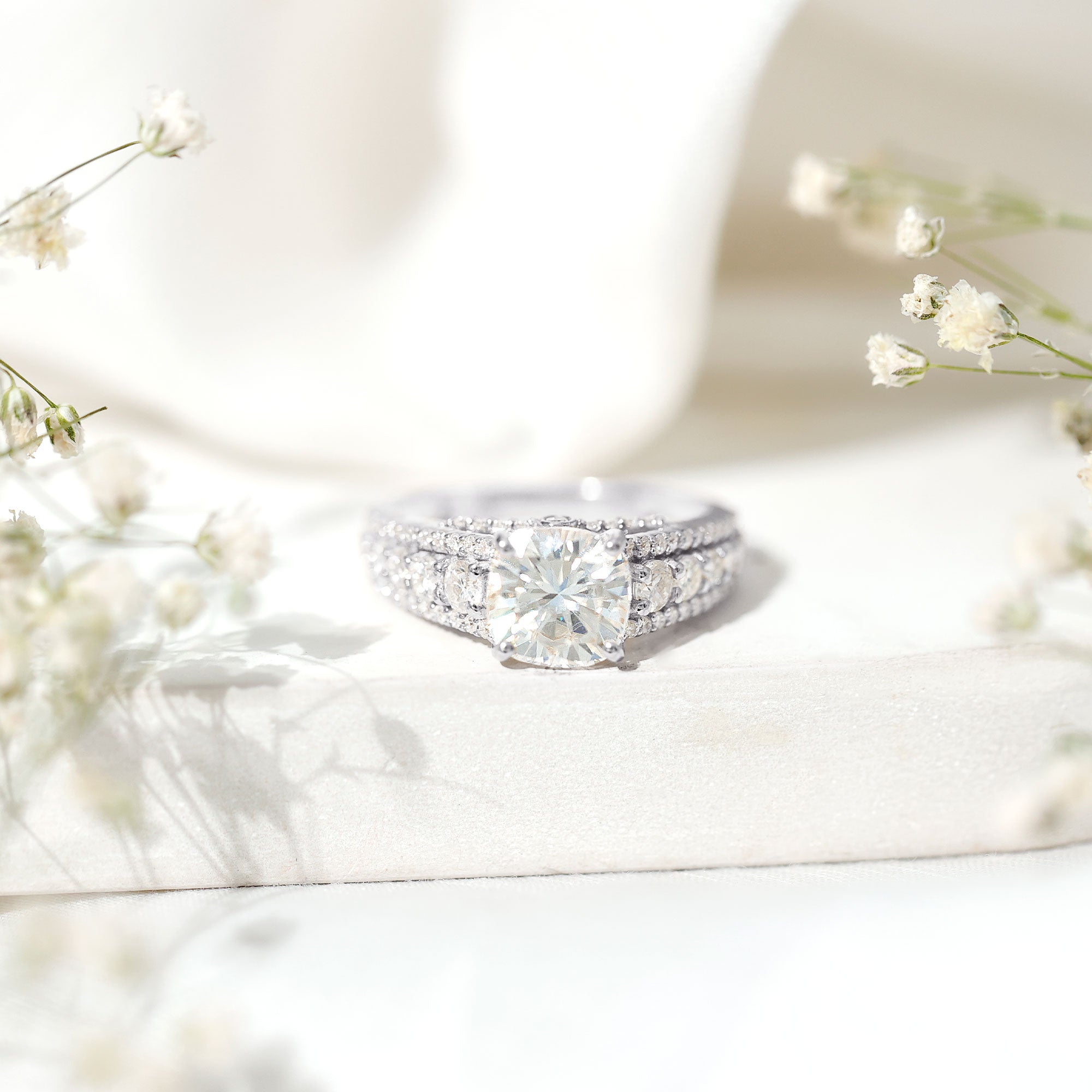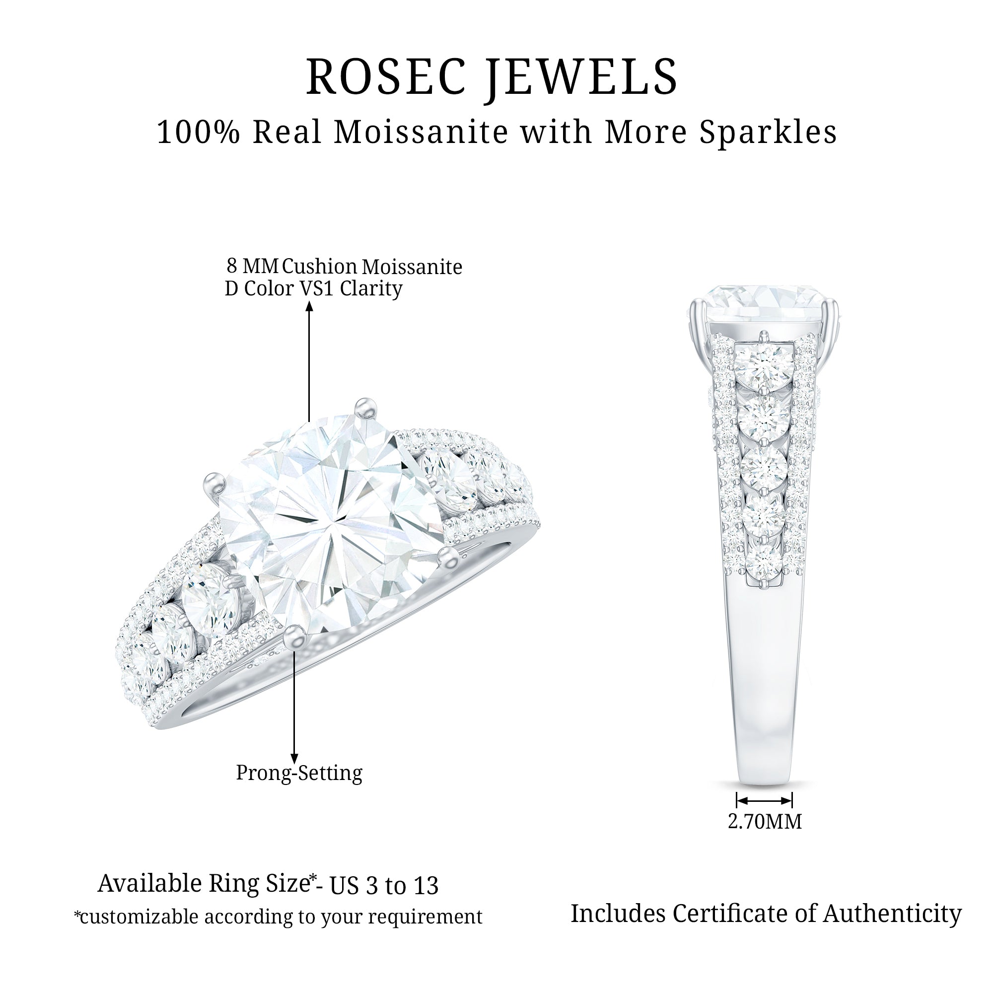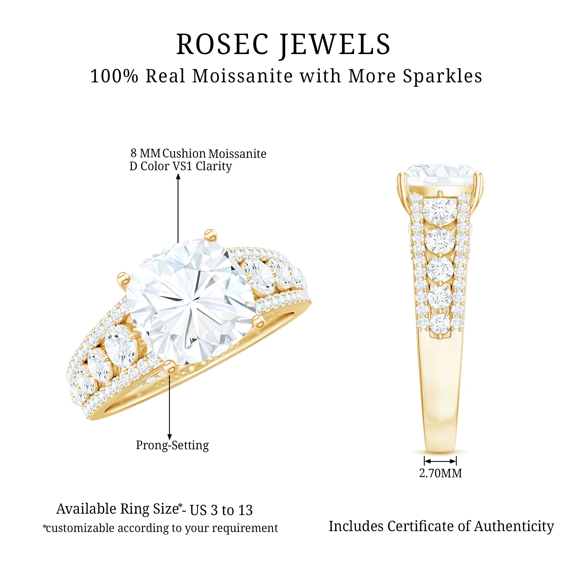 8 MM Cushion Cut Moissanite Engagement Ring with Side Stones