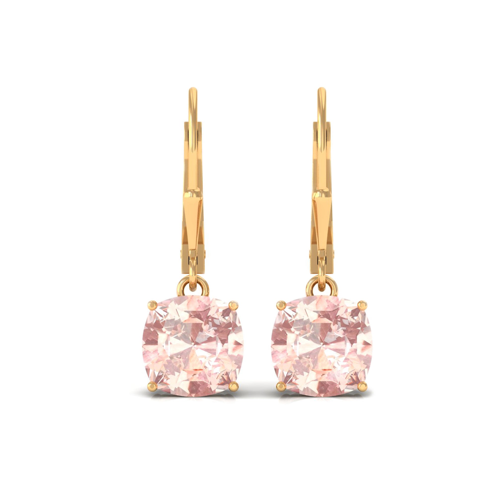 8 MM Cushion Cut Morganite Solitaire Drop Earrings with Lever Back