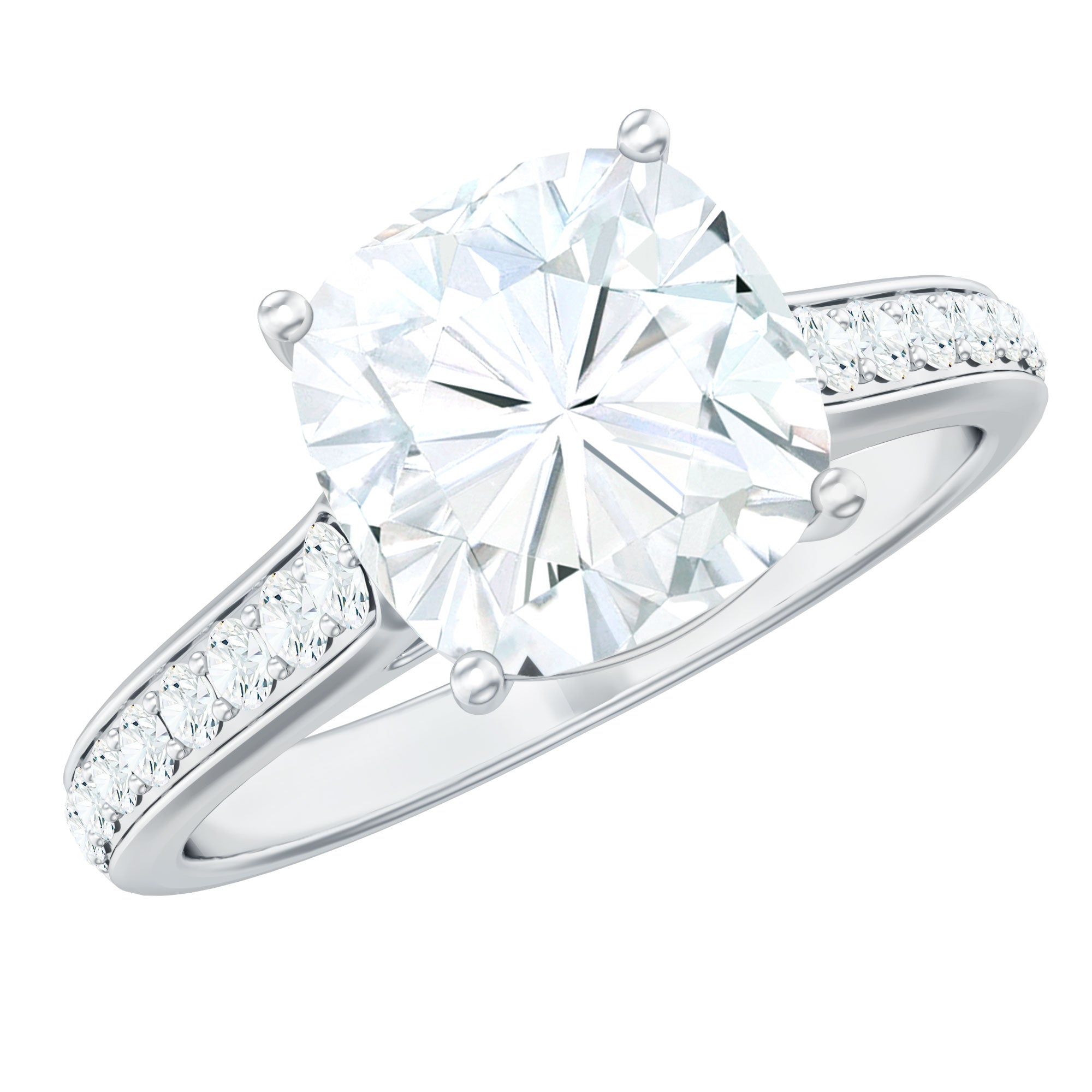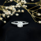 The captivating sparkle and brilliance of the Moissanite Engagement Ring is a perfect symbol of enduring love and commitment. This ring is adorned with 8 MM Cushion Shaped Moissanite in Basket Setting. This Cushion Cut Engagement Ring with Side Stones features D-VS1 Quality Moissanite which beautifully combines grace and style to create a truly unique piece. Its timeless elegance and ability to showcase the scintillating beauty of the center stone make it an ideal choice to celebrate a special occasion. Capture the essence of timeless love and brilliance with this Side Stone Engagement Ring, while embarking on a new chapter.