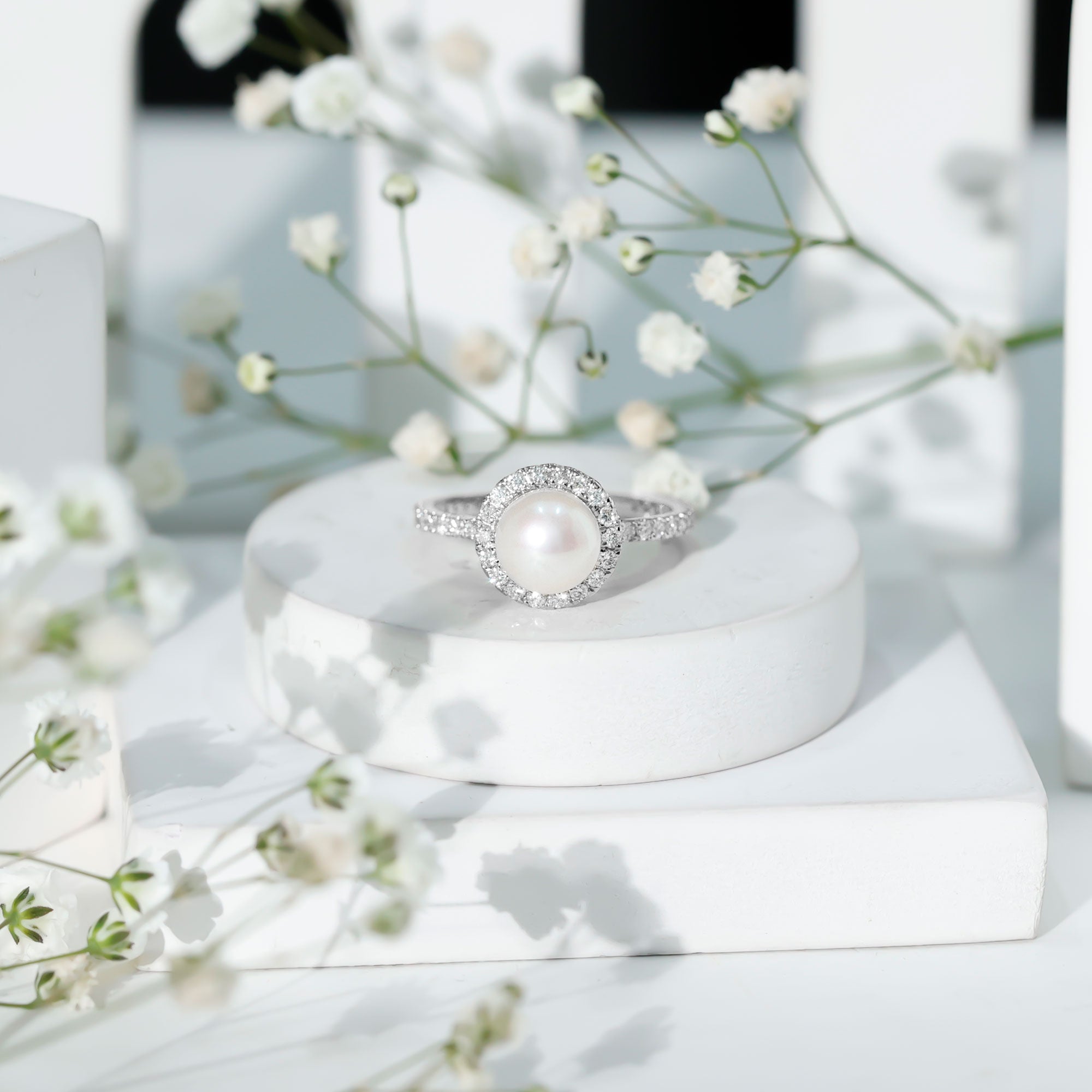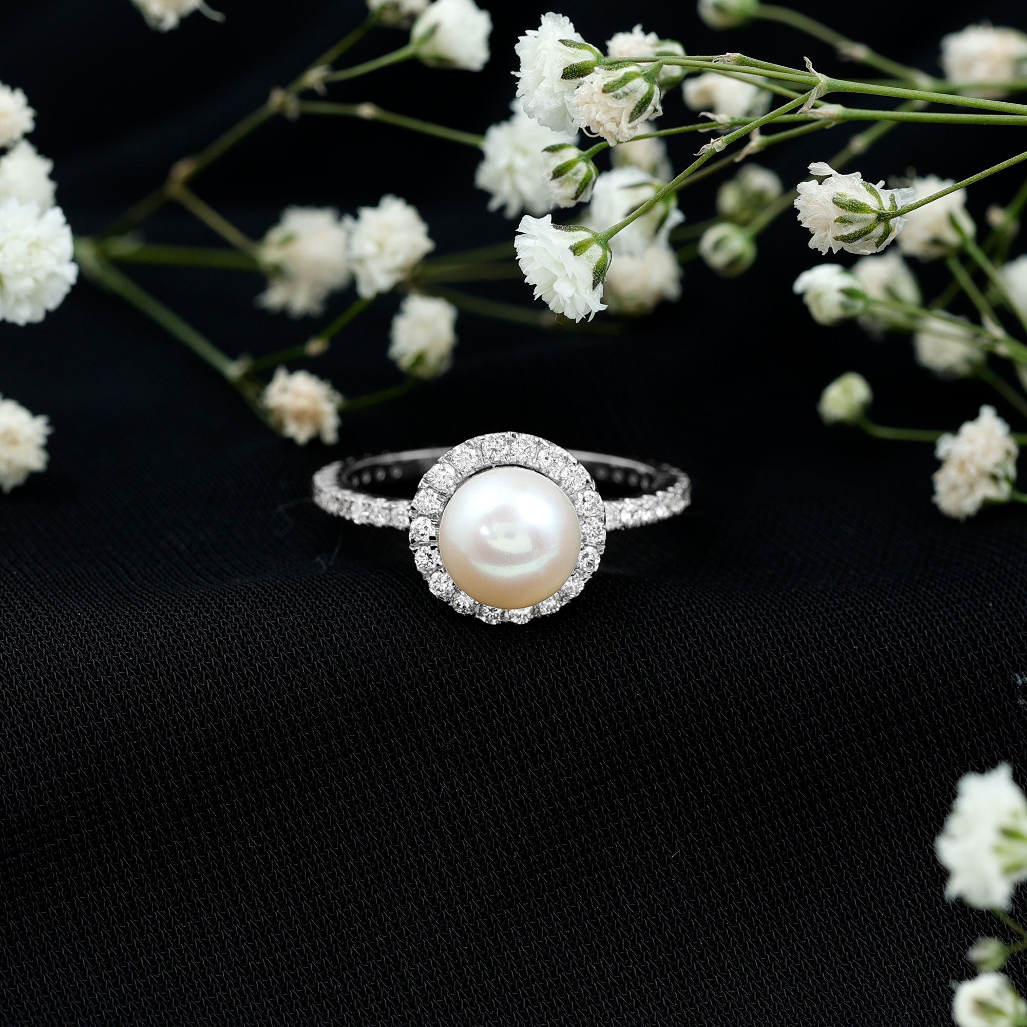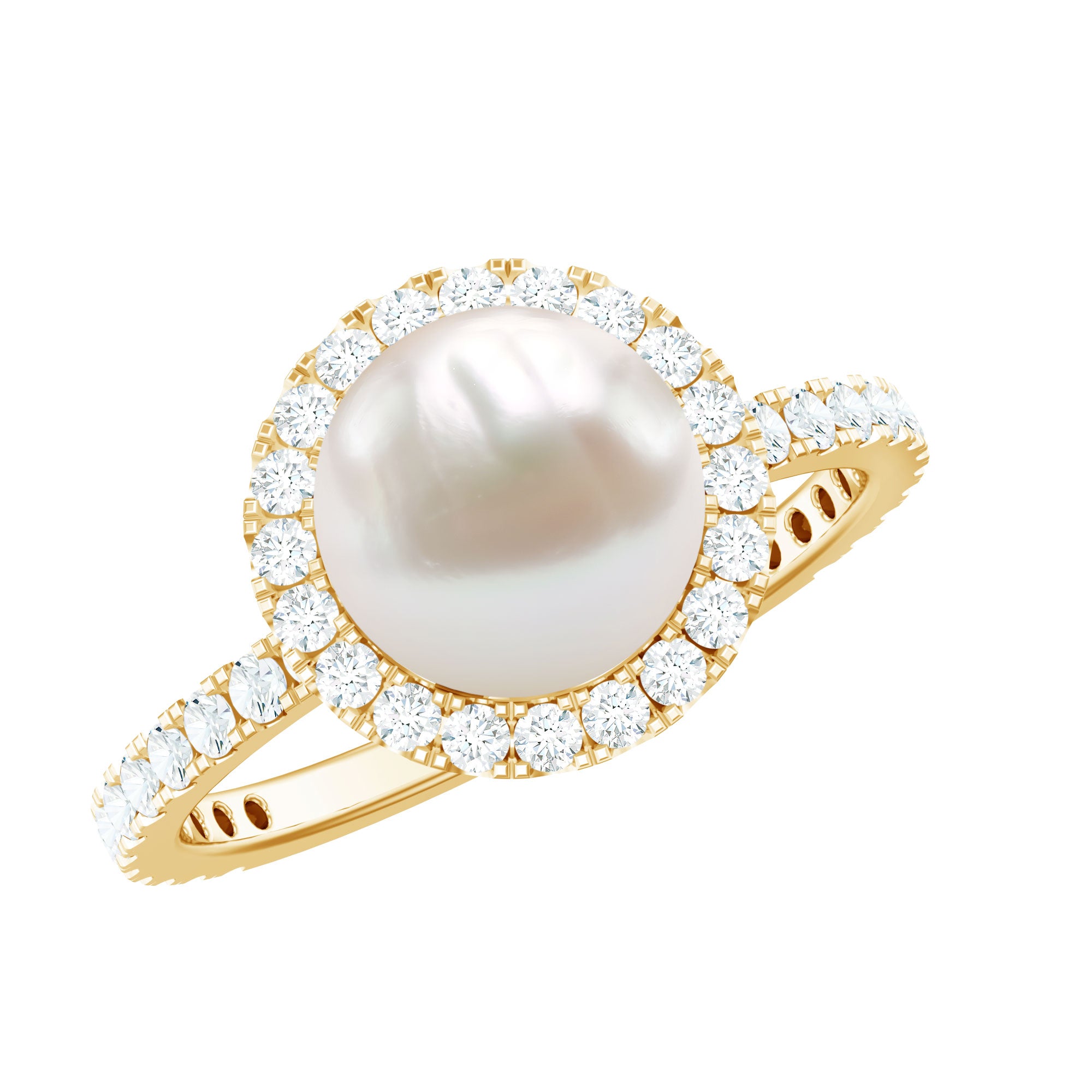 8 MM Freshwater Pearl and Diamond Floating Halo Engagement Ring