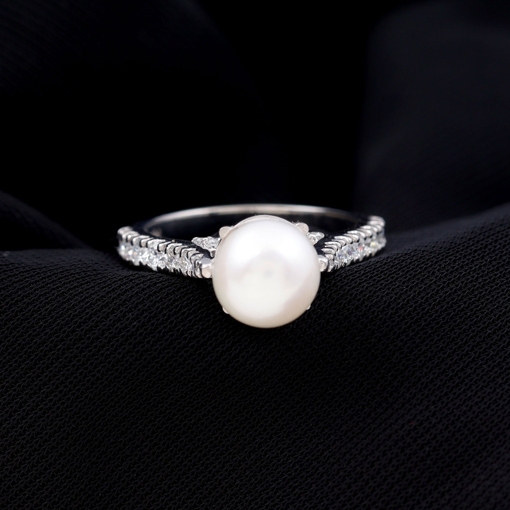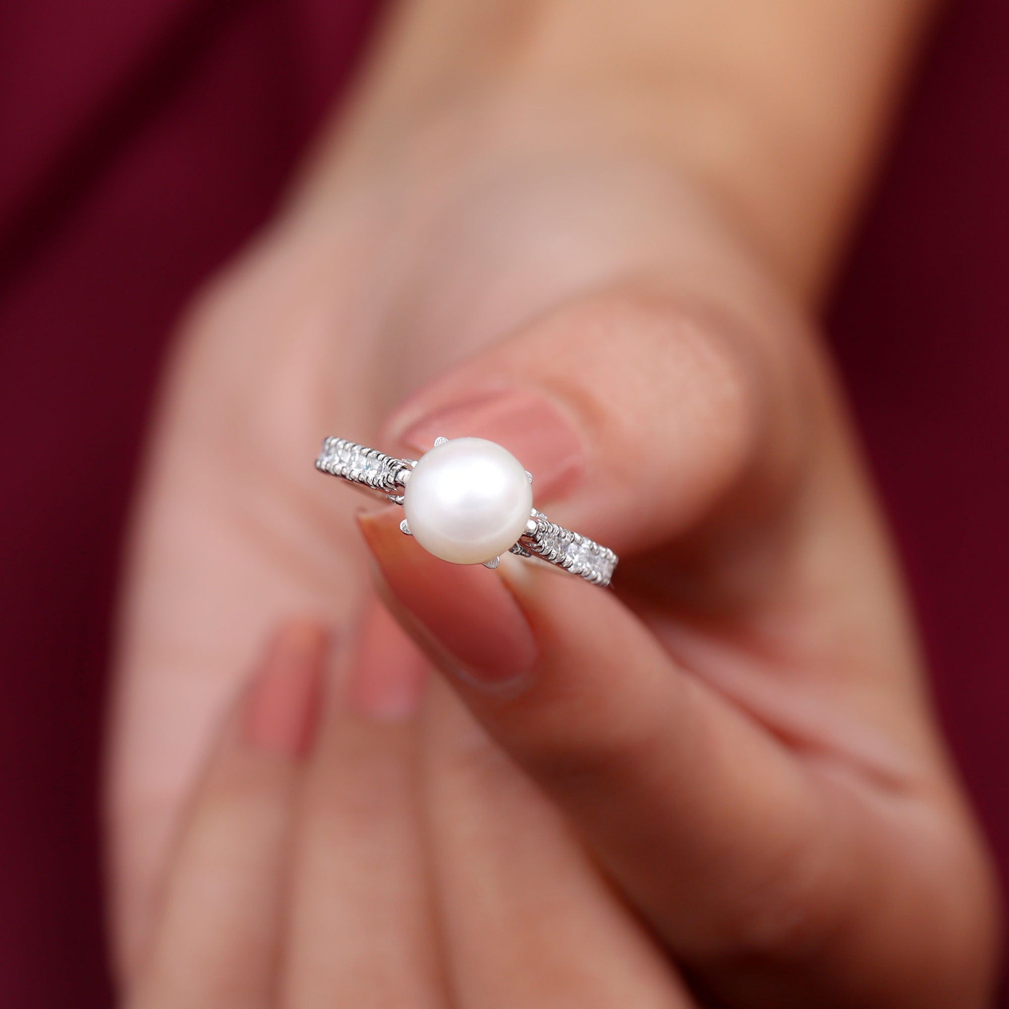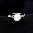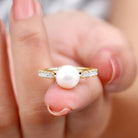 8 MM Freshwater Pearl Solitaire with Diamond Engagement Ring