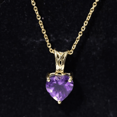 Improve your look with this Solitaire Pendant is embellished with Heart Shape Amethyst set as a solitaire in a 3 prong setting with Decorative Bail. This Lovely Solitaire Pendant is crafted in solid gold.
