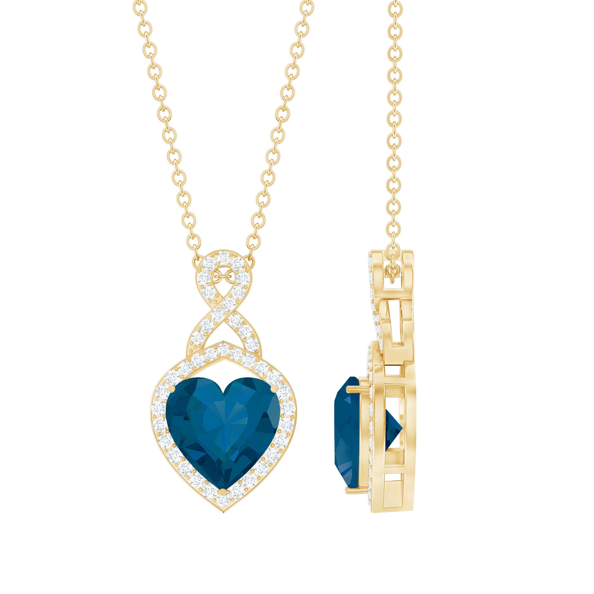8 MM Heart Shape London Blue Topaz Infinity Pendant with Diamond