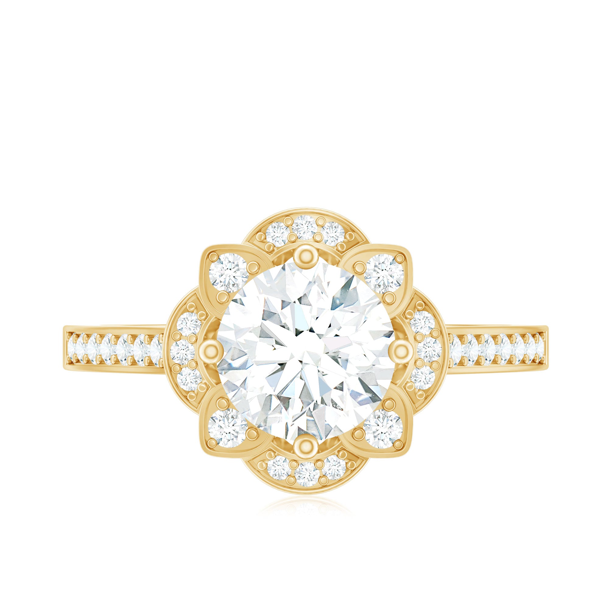 8 MM Lab Grown Diamond Vintage Engagement Ring With Diamond Studded Shank