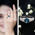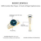 This London Blue Topaz Ring is an enchanting selection for a lifetime of cherished memories. Make a striking impression with this Topaz Engagement Ring, where stunning color harmonizes with timeless elegance. It showcases an 8 mm Round Shaped London Blue Topaz set in a prong setting, positioned at the center. The round brilliant cut Moissanite emits fire and brilliance, producing a captivating depth that attracts the eye and captivates the heart. This remarkable 2 Carat Engagement Ring achieves an ideal blend of contemporary style and classic refinement. Serving as a symbol of an unforgettable experience, this Statement Ring creates a dazzling depth that is impossible to ignore. This Side Stone Engagement Ring serves as a meaningful symbol of enduring love, ideal for marking significant events such as proposals, anniversaries, or personal accomplishments. It reflects sophisticated design and enduring brilliance, guaranteeing it will be a cherished item for years to come. Delivered in an exquisitely crafted jewelry box, this Designer Engagement Ring is ready to honor your special moment with sophistication and distinction. A testament to elegance and devotion, this Statement Engagement ring represents the beauty of a bond that is both exceptional and everlasting.