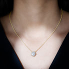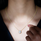 This mesmerizing 2 CT Diamond Necklace is a fine piece of jewelry with a soft and subtle appeal. It features a brilliant 8 MM round-shaped diamond (lab grown) stone of EF-VS quality. The gem is securely nestled in a prong setting, ensuring a sleek and polished look. The sunburst design with smaller diamonds surrounds the main stone and adds a unique, nature-inspired charm that makes this Round Diamond Pendant both timeless and striking. This Sunburst Pendant is a thoughtful and meaningful gift for anyone born in April or for those who appreciate the beauty of nature. Our beautiful pieces of jewelry are delivered to you in a premium jewelry box and handed over to you in a ready-to-gift state.