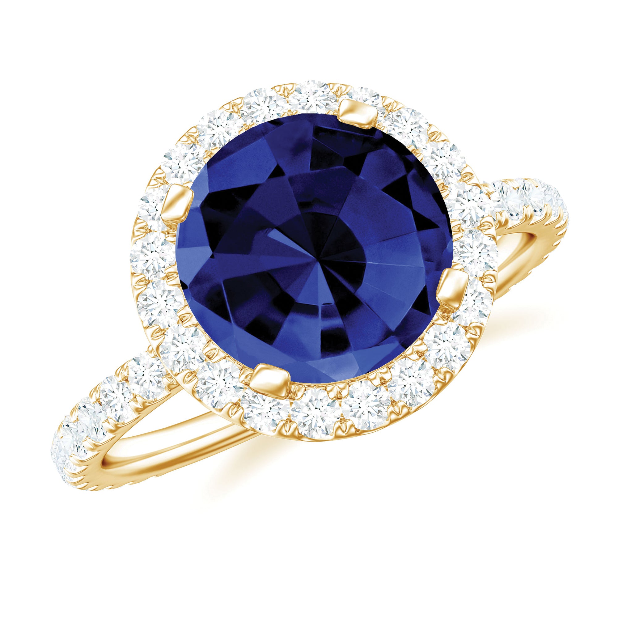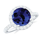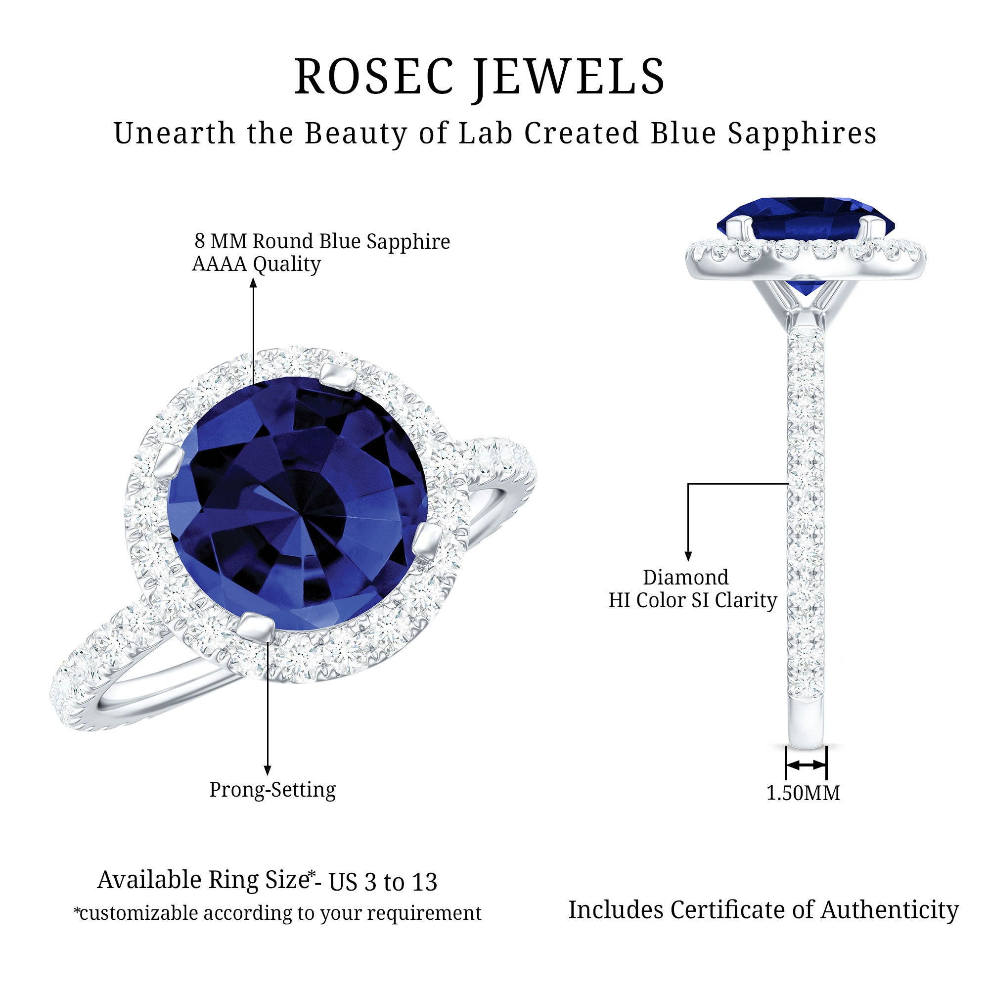 8 mm Round Lab Created Blue Sapphire Classic Engagement Ring with Diamond Halo