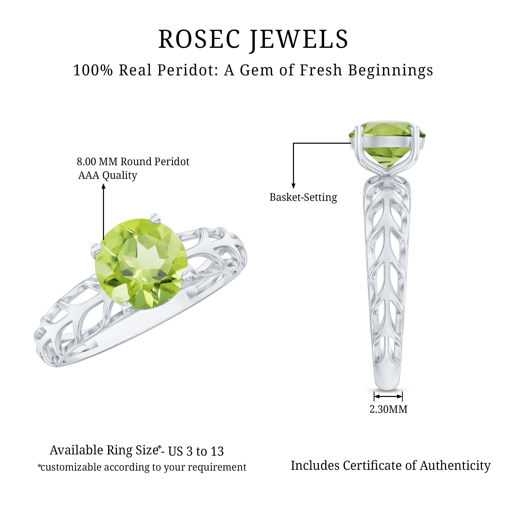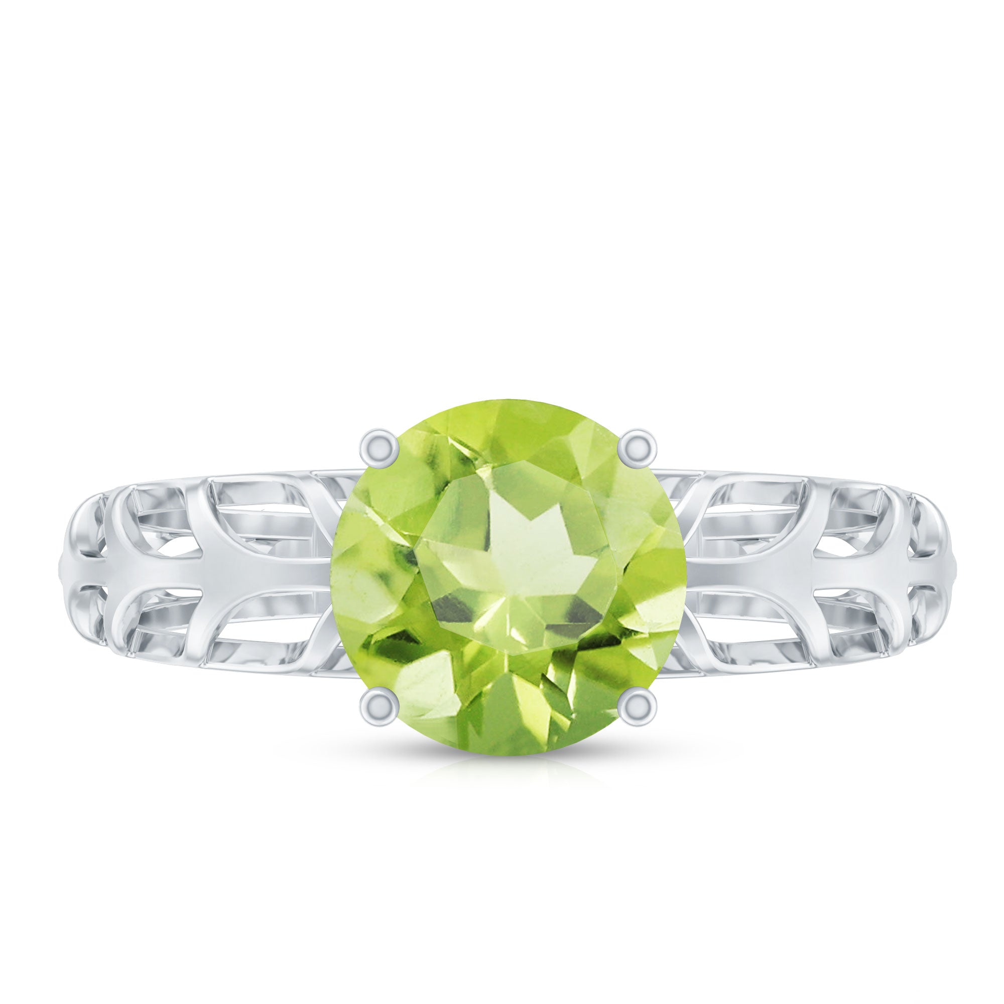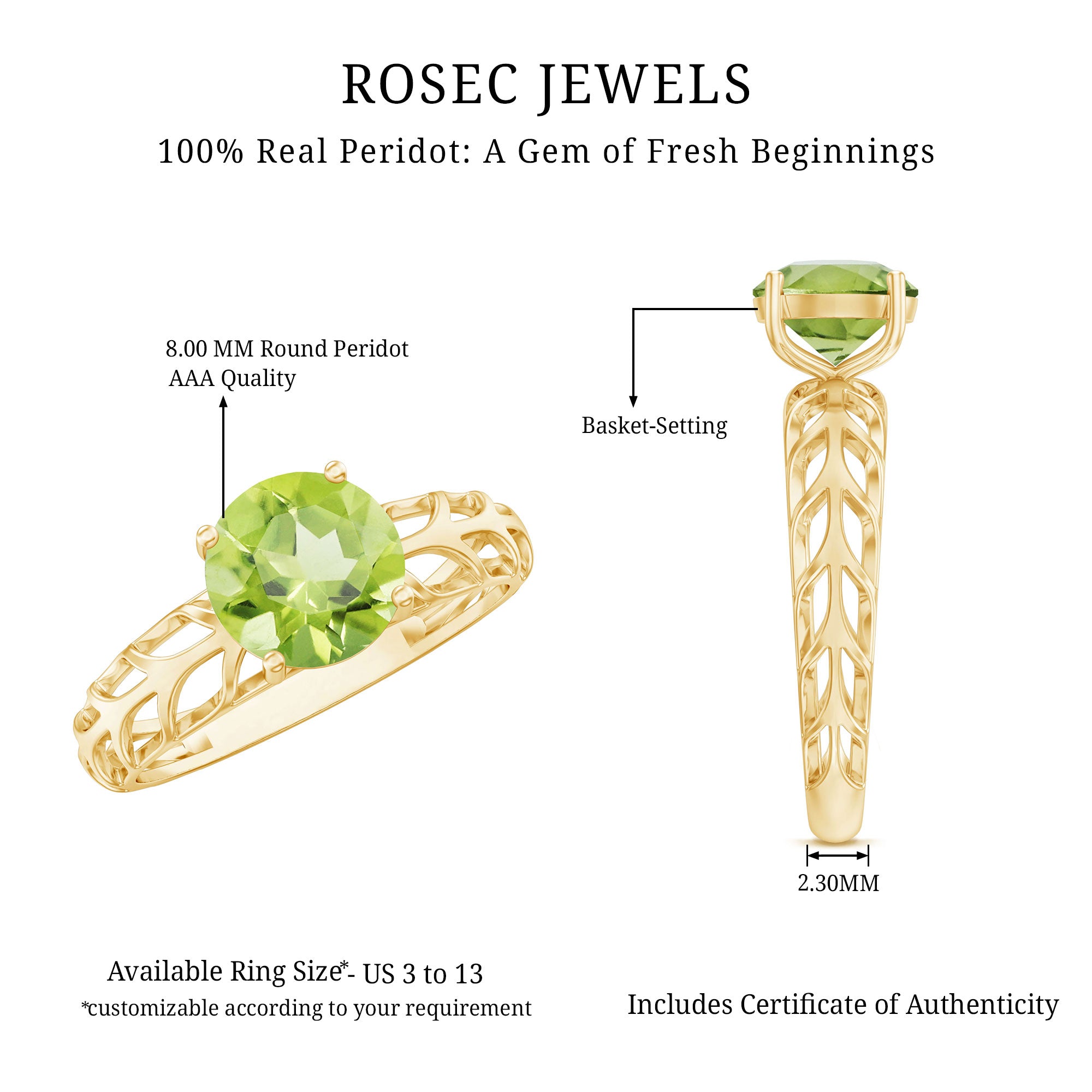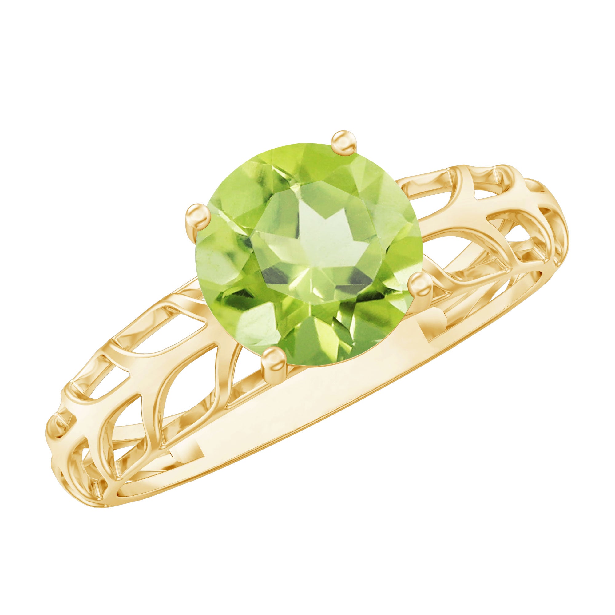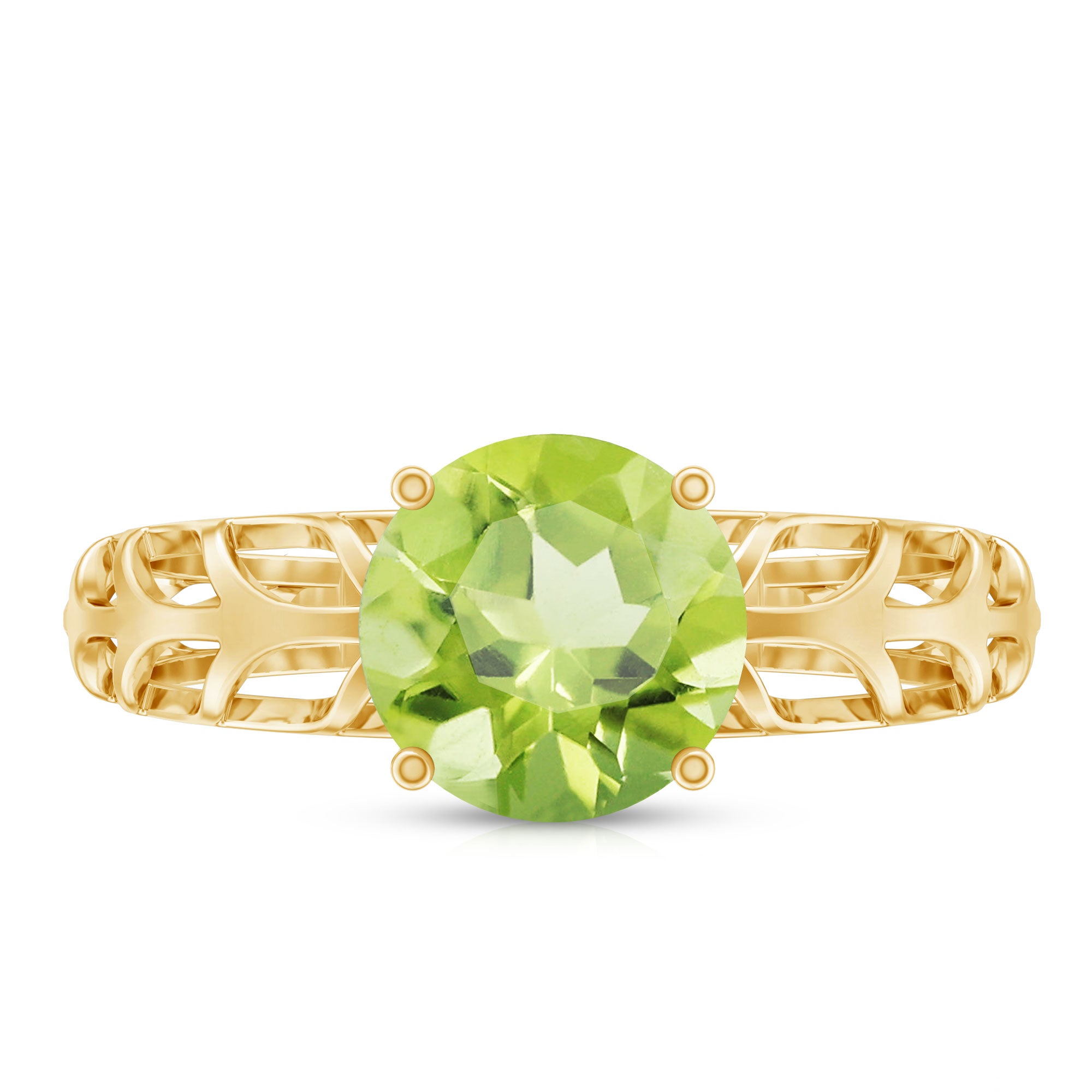 8 MM Round Peridot Solitaire Gold Cut Work Ring in Prong Setting
