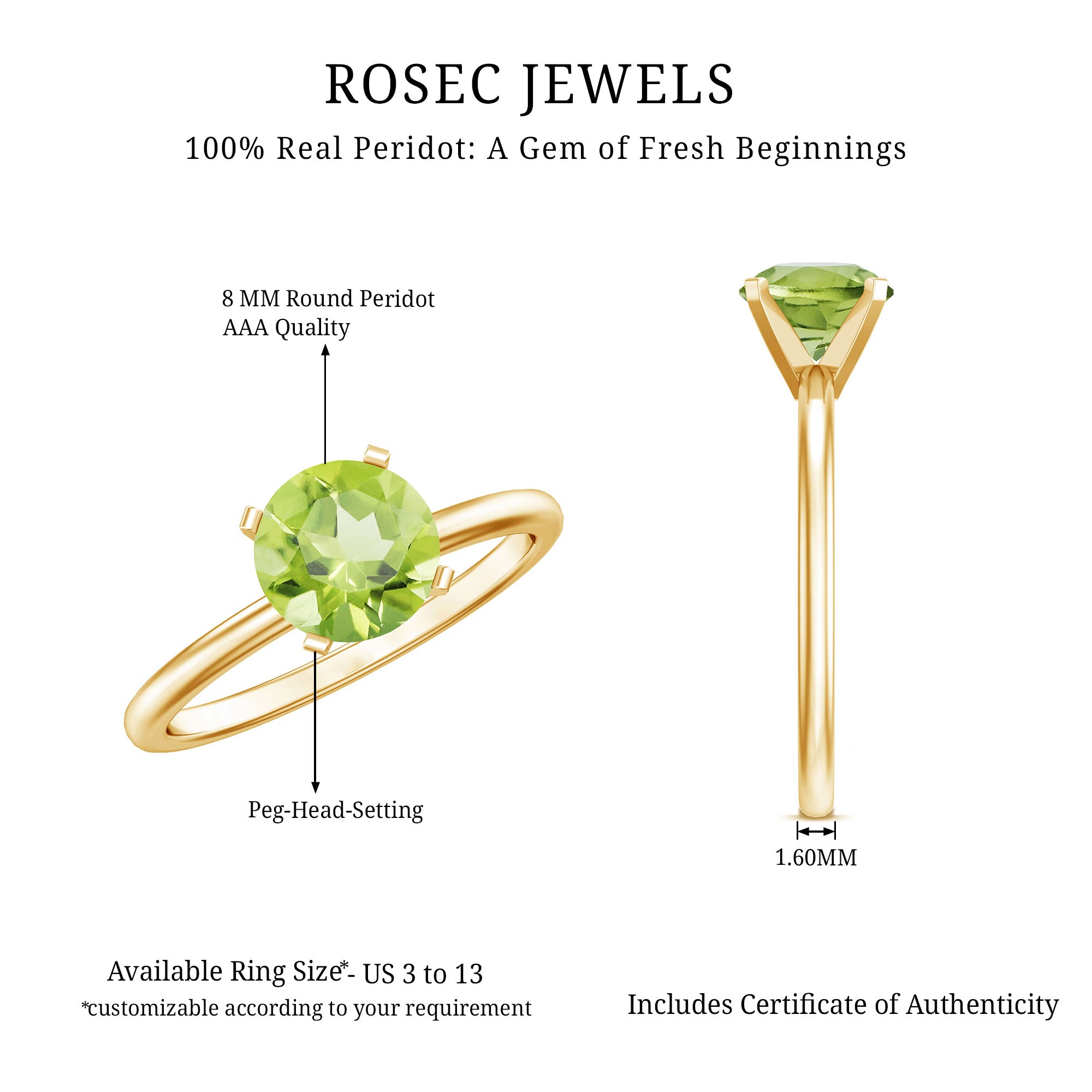 8 MM Round Peridot Solitaire Ring in Peg Head Setting