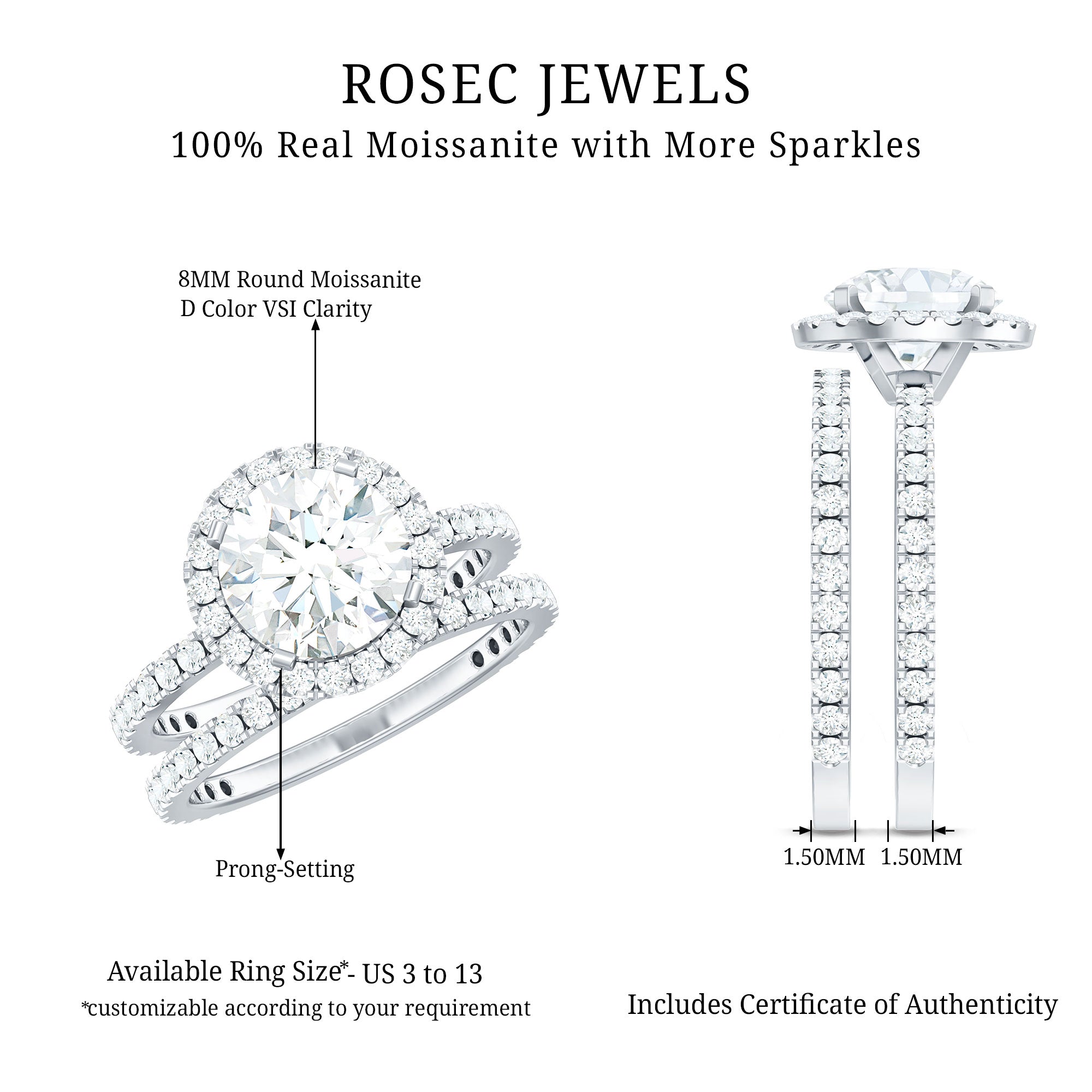8 MM Round Shape Moissanite Halo Wedding Ring Set