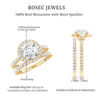 Get your lady this Moissanite Ring Set and witness a priceless moment. The ring set features an Engagement Ring embedded with an 8 MM Round Shape Moissanite at the center securely placed in Prong Setting encircled with a halo of petite moissanites. Whereas the enhancer band is studded with the petite moissanite. This Bridal Ring Set beholds the shine of D-VS1 Quality Moissanites. This Wedding Ring Set will sparkle and add an extra glow to your outfit. This stylish and striking ring set is sure to make her heart skip a beat and will be cherished for years to come. This ring set will be delivered to you in the classic jewelry box for the storage of the ring set.