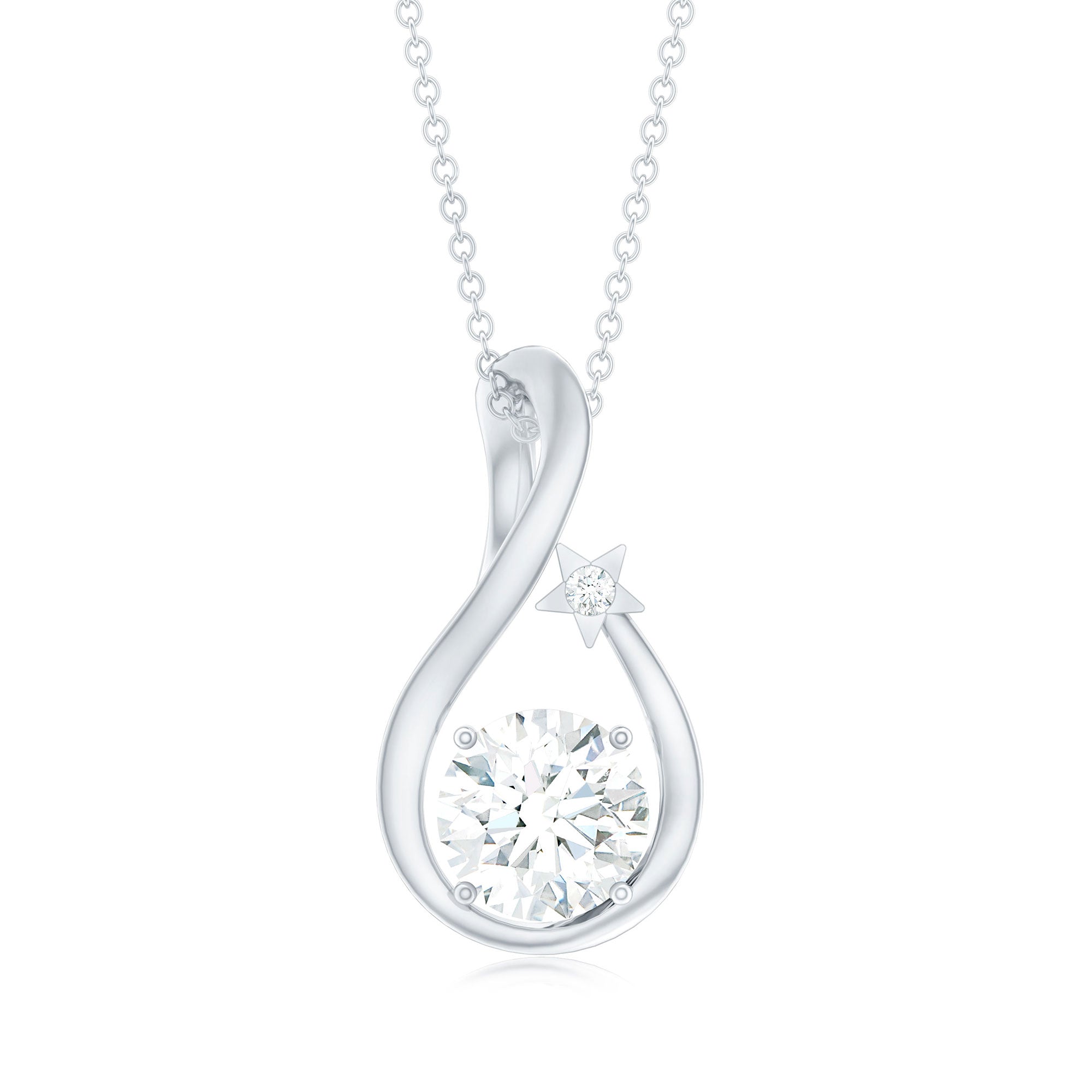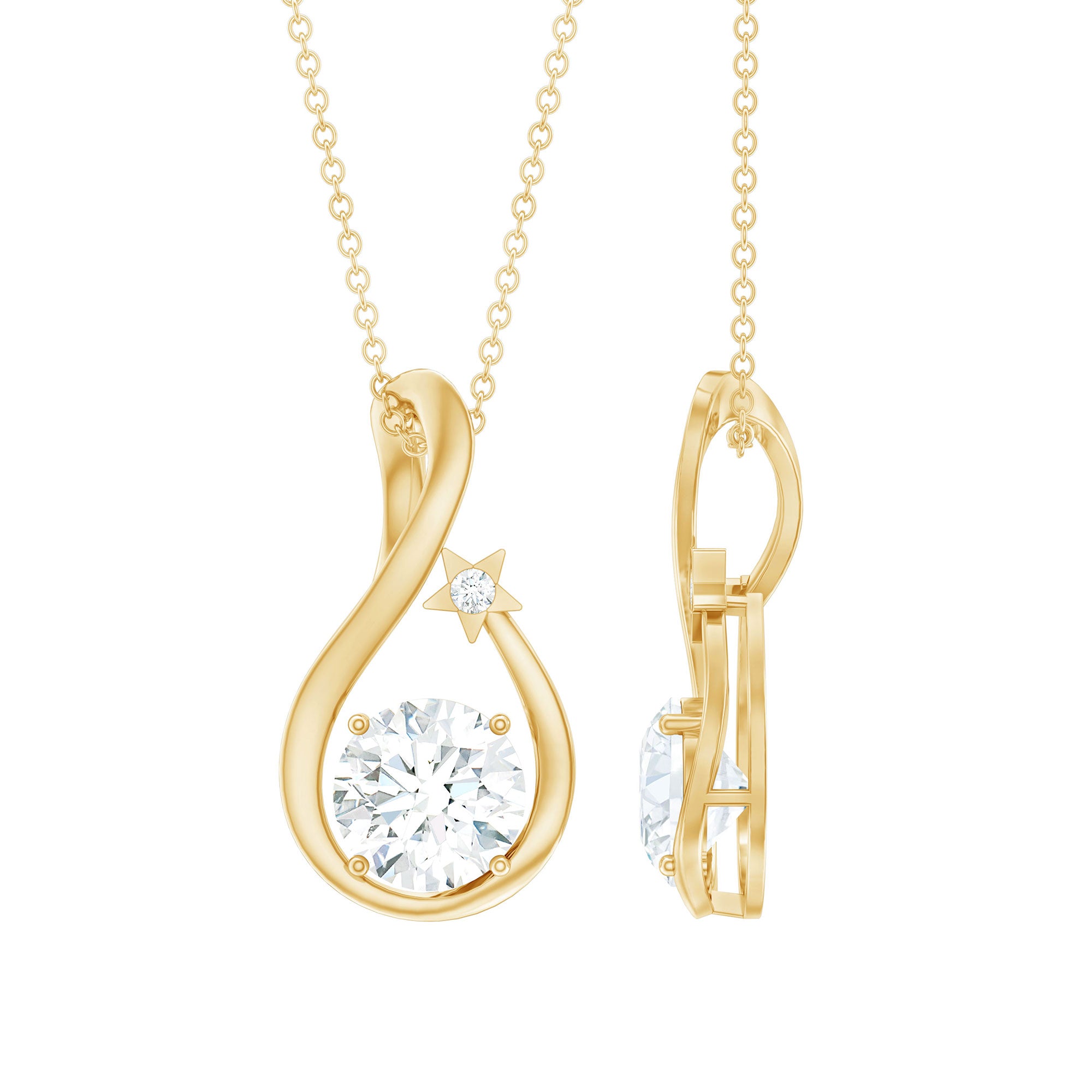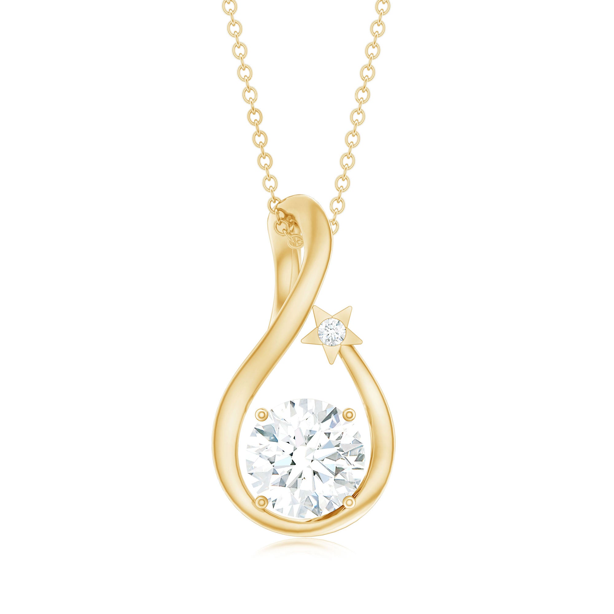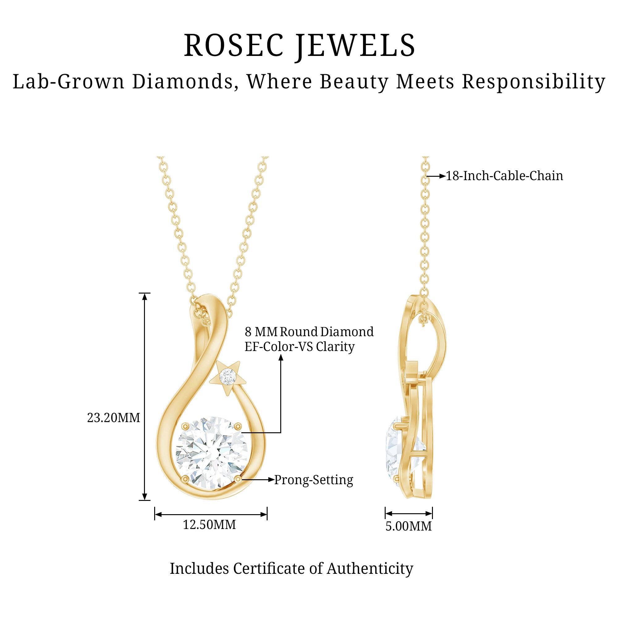 Elevate your style with the enchanting Lab Grown Diamond Pendant featuring a Star Motif, an ideal accessory for any occasion, day or night. This Teardrop Pendant Necklace highlights an 8 MM round-shaped Synthetic Diamond of EF-VS quality securely set in prong setting, radiating brilliance. The charming Star Motif, adorned with a round diamond, brings a hint of the celestial to this exquisite piece. This Solitaire Diamond Pendant complements any outfit, whether youre dressing up or keeping it casual.