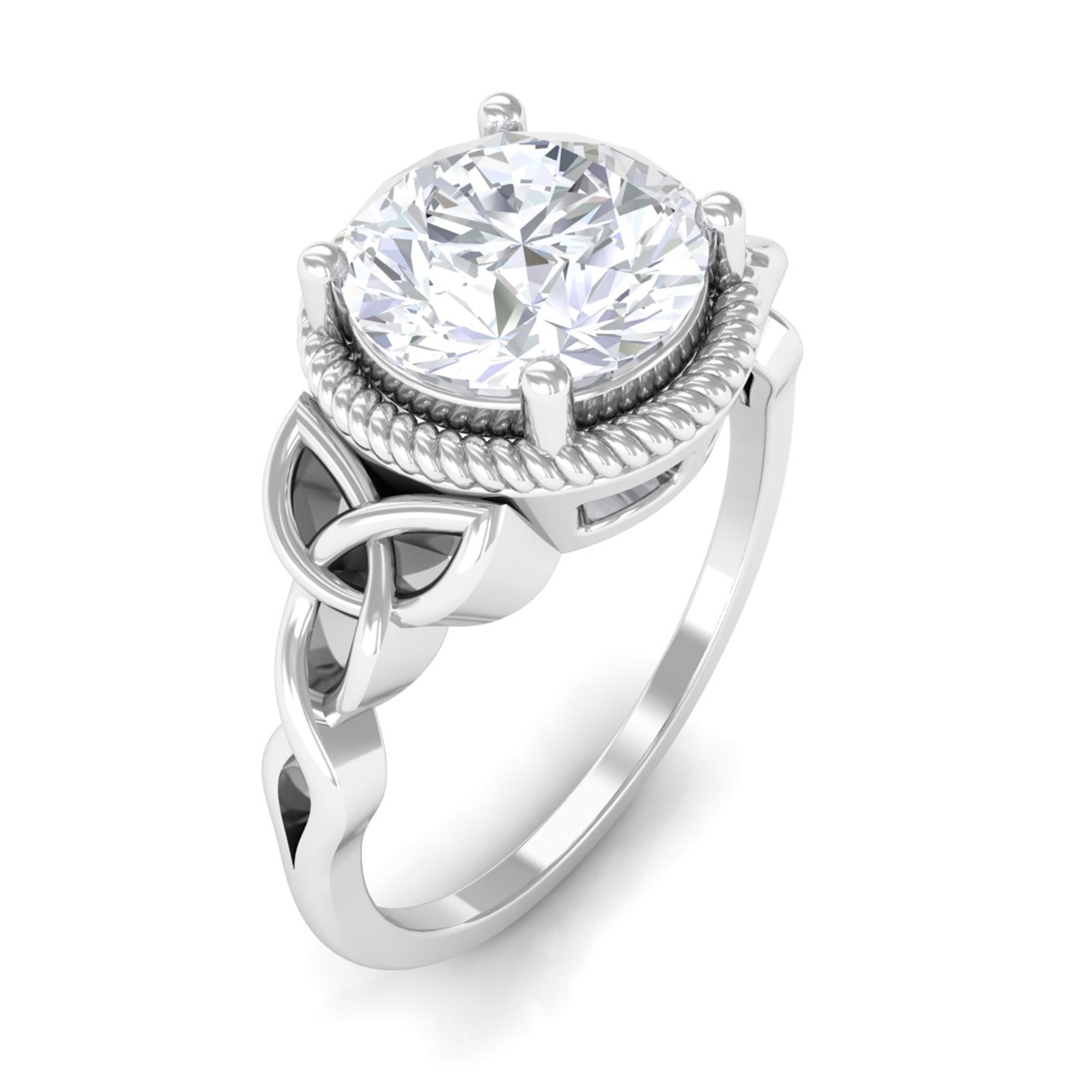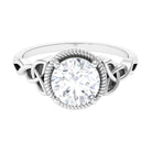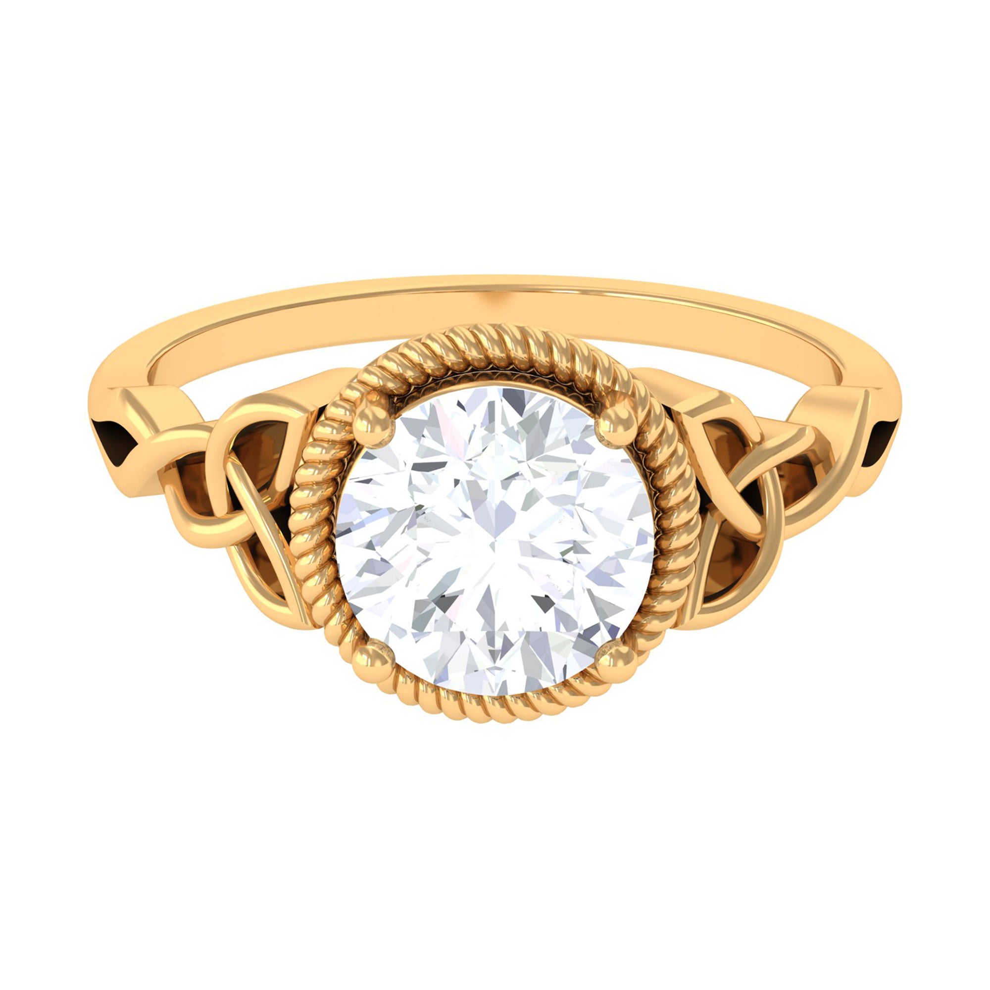 8 MM Round Zircon Solitaire Twisted Rope Ring with Gold Celtic Details