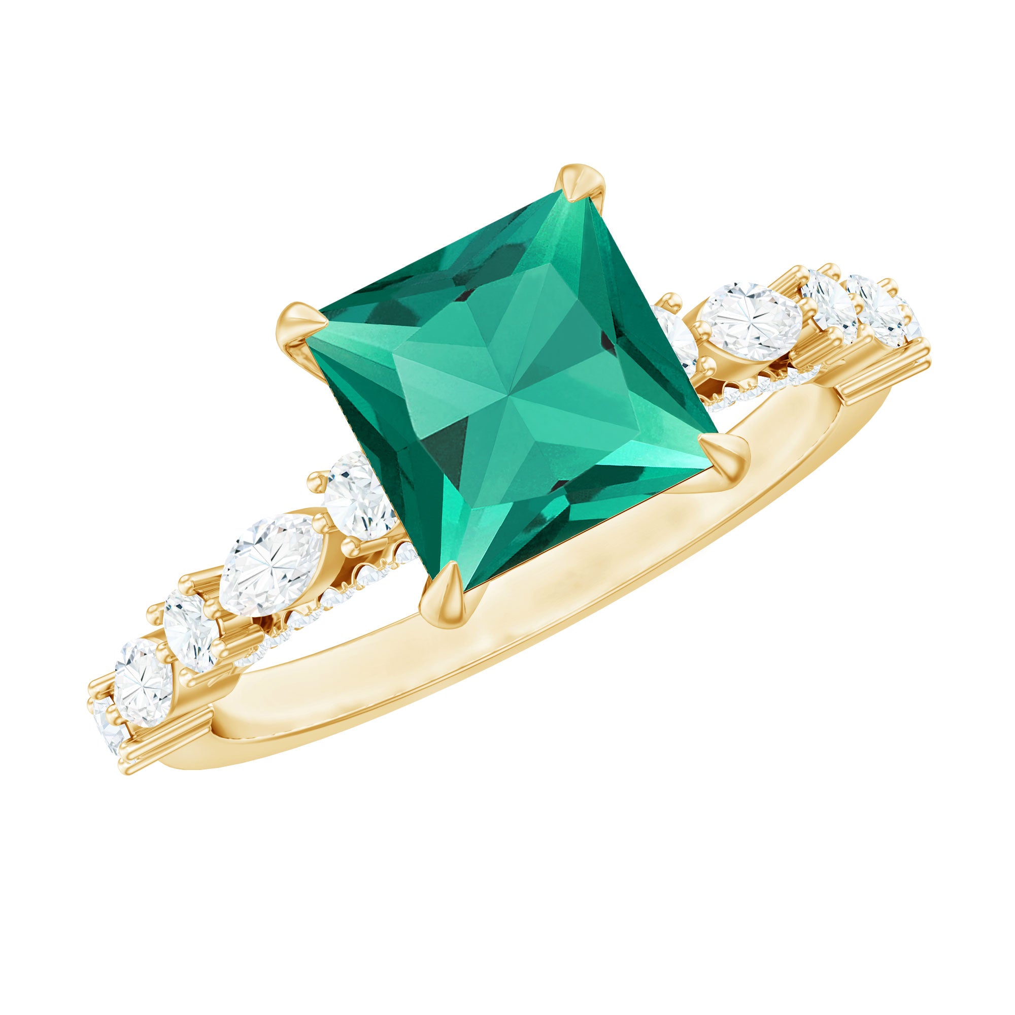 Princess Cut Lab Emerald Solitaire Engagement Ring