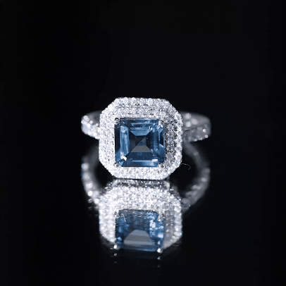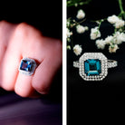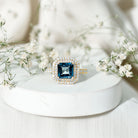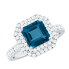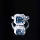 8mm Asscher Cut London Blue Topaz Art Deco Engagement Ring with Double Halo