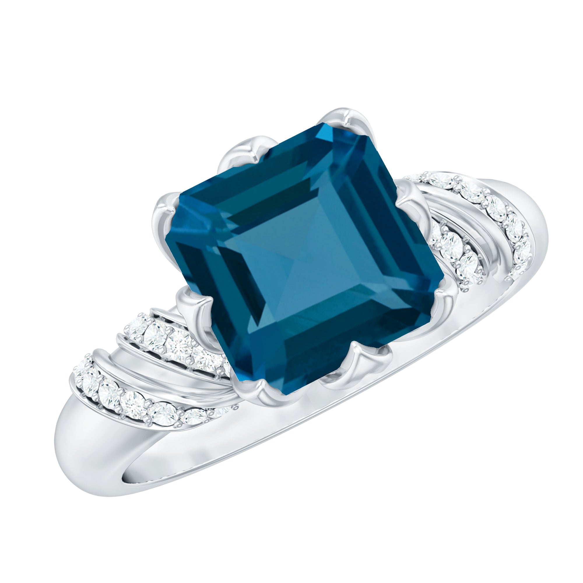 8mm Asscher Cut London Blue Topaz Designer Solitaire Engagement Ring