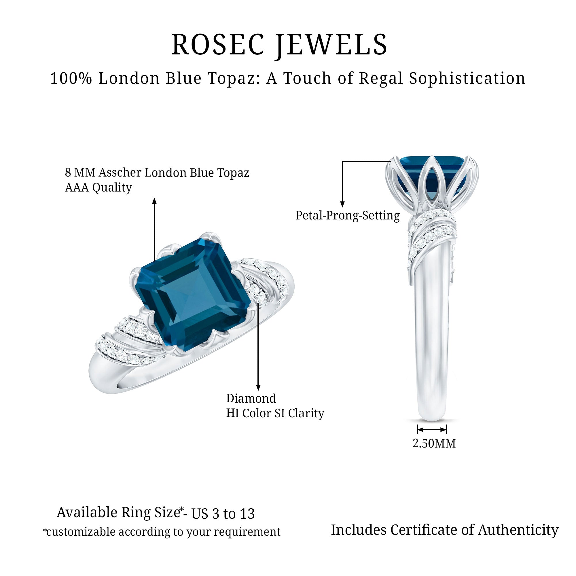 8mm Asscher Cut London Blue Topaz Designer Solitaire Engagement Ring