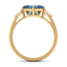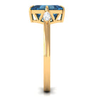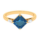 8mm Asscher Cut London Blue Topaz Diagonal Solitaire Ring with Marquise Diamond
